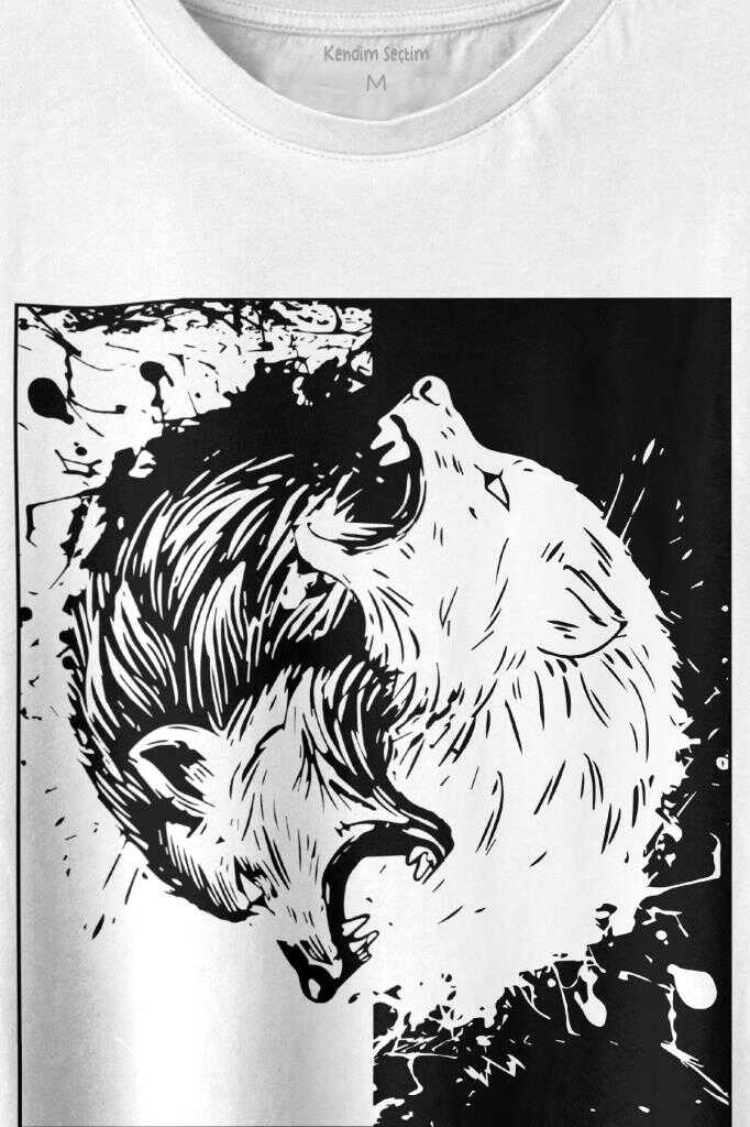 Siyah Beyaz Ying Yang İyilik Kötülük Asil Kurt Bozkurt Baskılı Tişört Unisex T-shirt