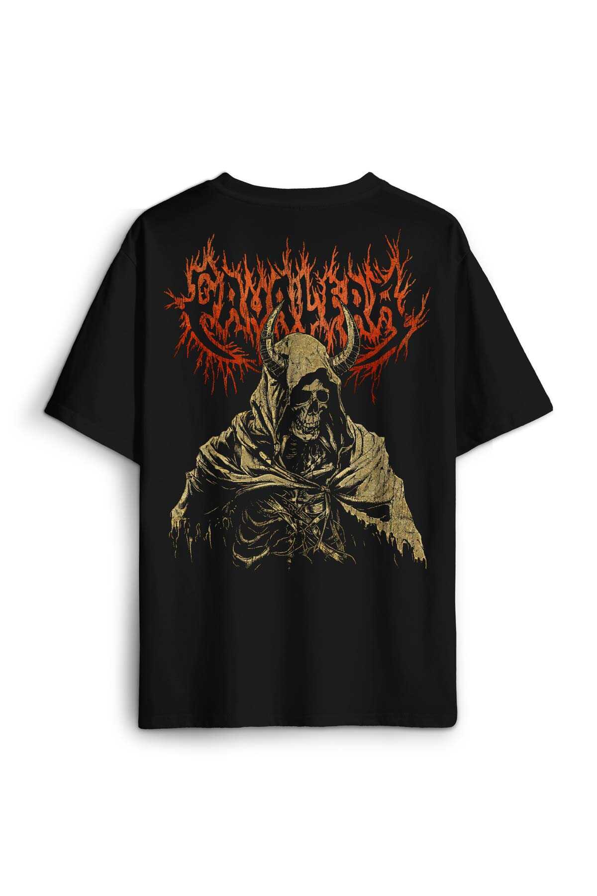 Siyah Oversize Tişört Cavalera Metal Music Sepultra Guitar Drum Rock Gitar Baskılı Unisex T-shirt
