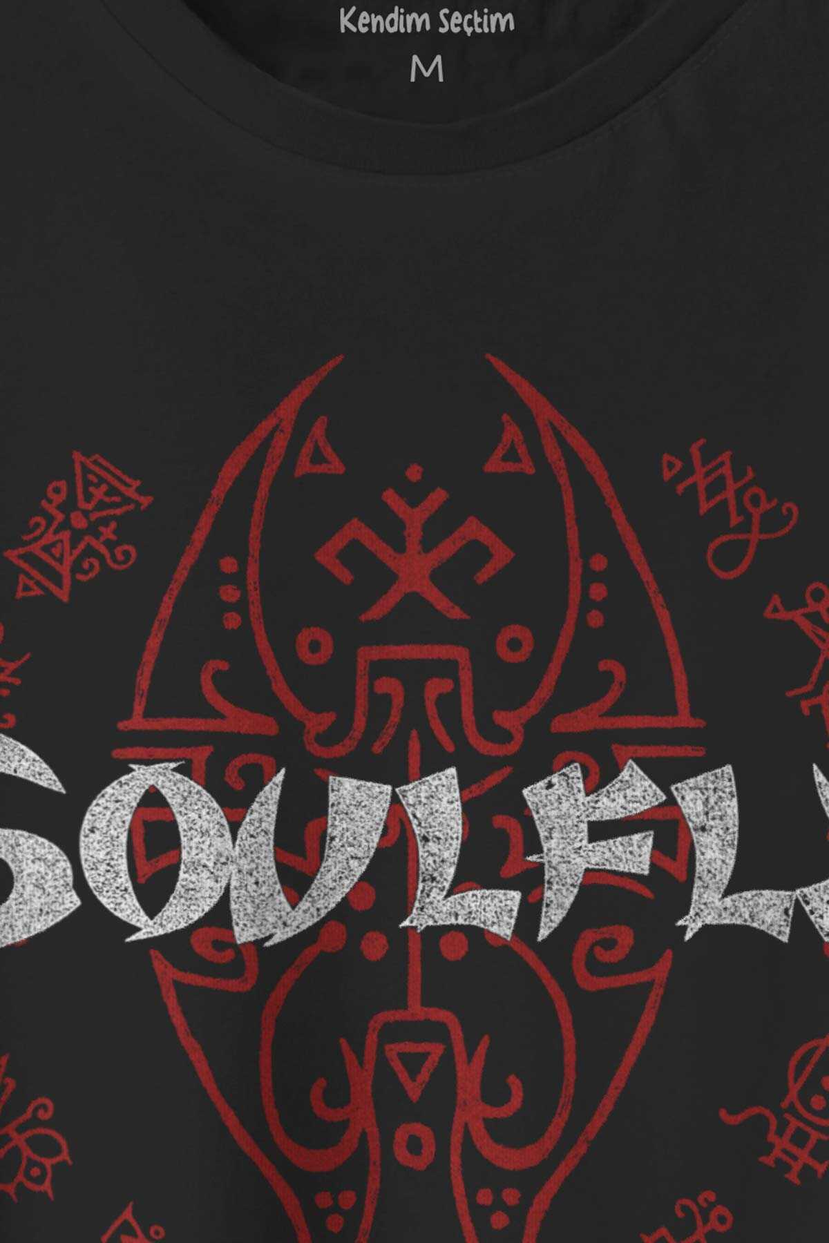 Siyah Renk Tişört Soulfly Baskılı Unisex Regular Fit Pamuklu T-shirt