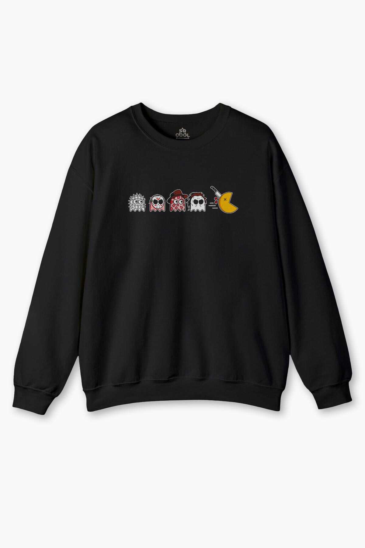 Siyah Sweatshirt Among Us Pacman Hallowen Korku Film Oyun Siyah Baskılı Sweat