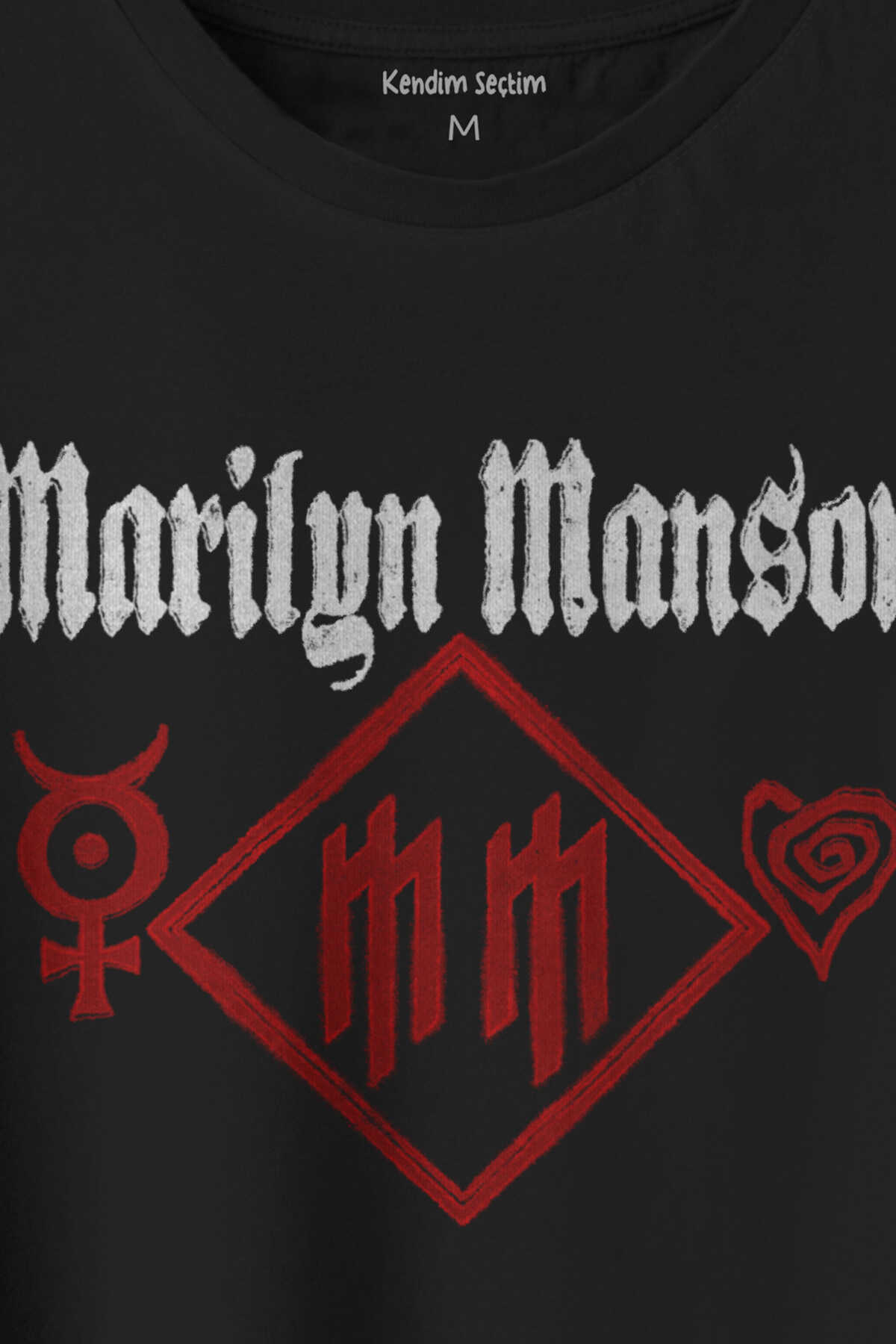 Siyah T-shirt Marilyn Manson Logo Kalp Rock Metal Müzik Baskılı Unisex Kısa Kollu Tişört. ; Modelin Ölçüleri: Boy: 1.87 cm , Modelin Üzerindeki "L" bedendir.; Özel Tasarım Siyah Baskılı Tişört – Unisex / Regular Fit%100 Pamuk – Yüksek Kalite Compact Penye Kumaş.; Kendim Seçtim mağazasından ""KRETAS"" markalı özel tasarım haki baskılı tişör.; Tişörtlerimiz nefes alabilen, terletmeyen ve uzun ömürlü kullanım sunan yüksek kalite compact penye kumaştan üretilmiştir.; Kumaşla bütünleşen dijital baskı teknolojisi sayesinde desenler canlılığını uzun süre korur.; Unisex Regular Fit kalıbı ile kadın ve erkek kullanıma uygundur.; Dijital baskıda kullanılan boyalar Oeko-Tex® 100 Sertifikalıdır.; - Günlük kullanım, hediye seçenekleri ve sokak modası için ideal.; Yerli üretim, güvenilir mağaza ve hızlı gönderi avantajları ile.; Yıkama Talimatı , 30°C'de ters çevirerek yıkayınız.; Kurutma makinesi kullanmayınız, sıkma yapmayınız.; Baskı kısmı içte kalacak şekilde ütüleyiniz.; Kendim Seçtim mağazasını takip ederek, “Kendim Seçtim”, ""Kretas"", “So Cool”, “Hantal” ve “Padoc” gibi özel markaların en yeni ürünlerinden haberdar olabilir, Siyah tişört, baskılı tişört, erkek giyim, kadın giyim, unisex t-shirt ve sweatshirt modellerini inceleyebilirsiniz.