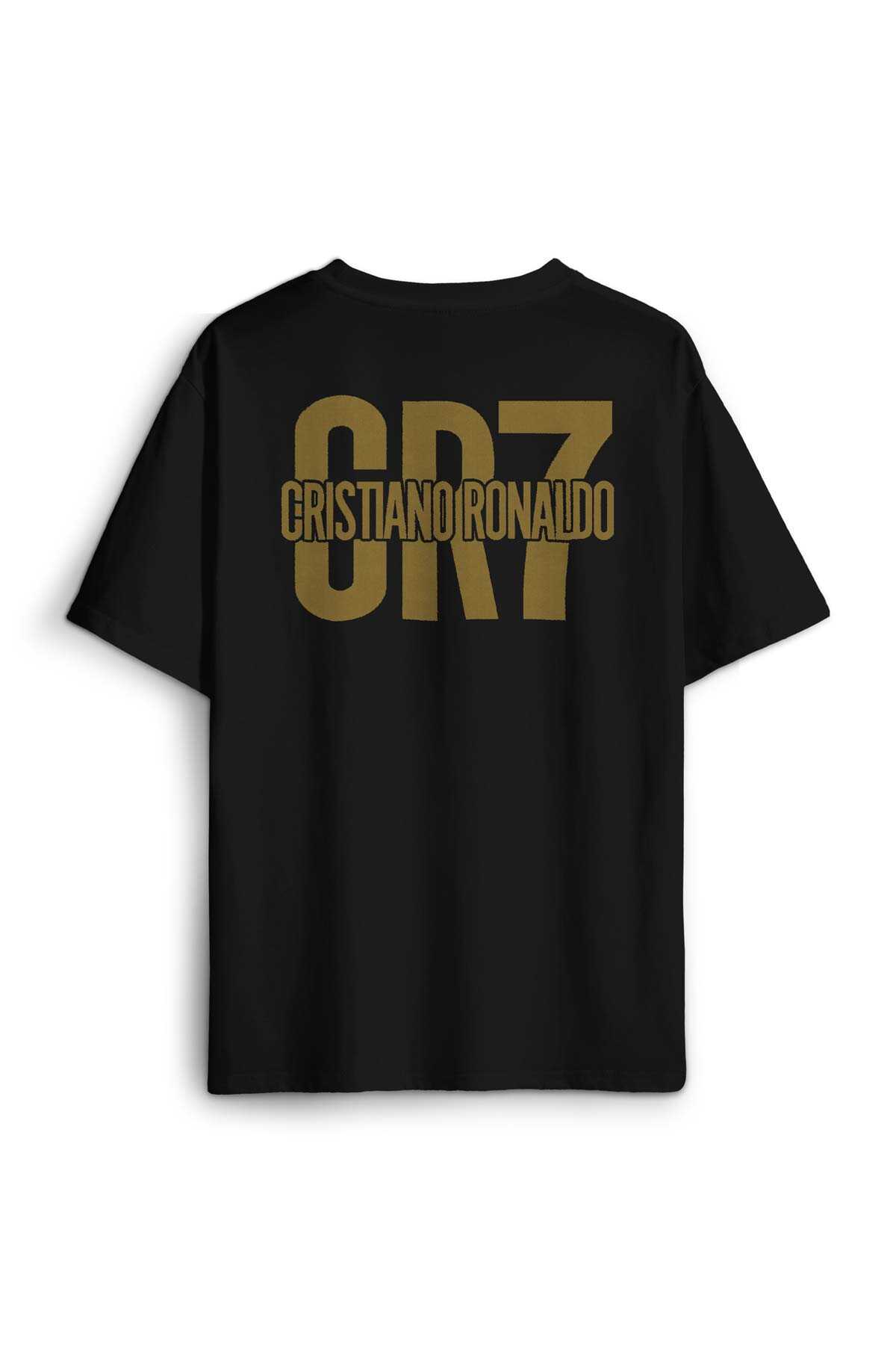 - Siyah Tişört Best Footballer Cristiano Ronaldo Football Goat Sırt Ön Baskılı Oversize Tişört Unisex T-Shirt - OVR12S-4214