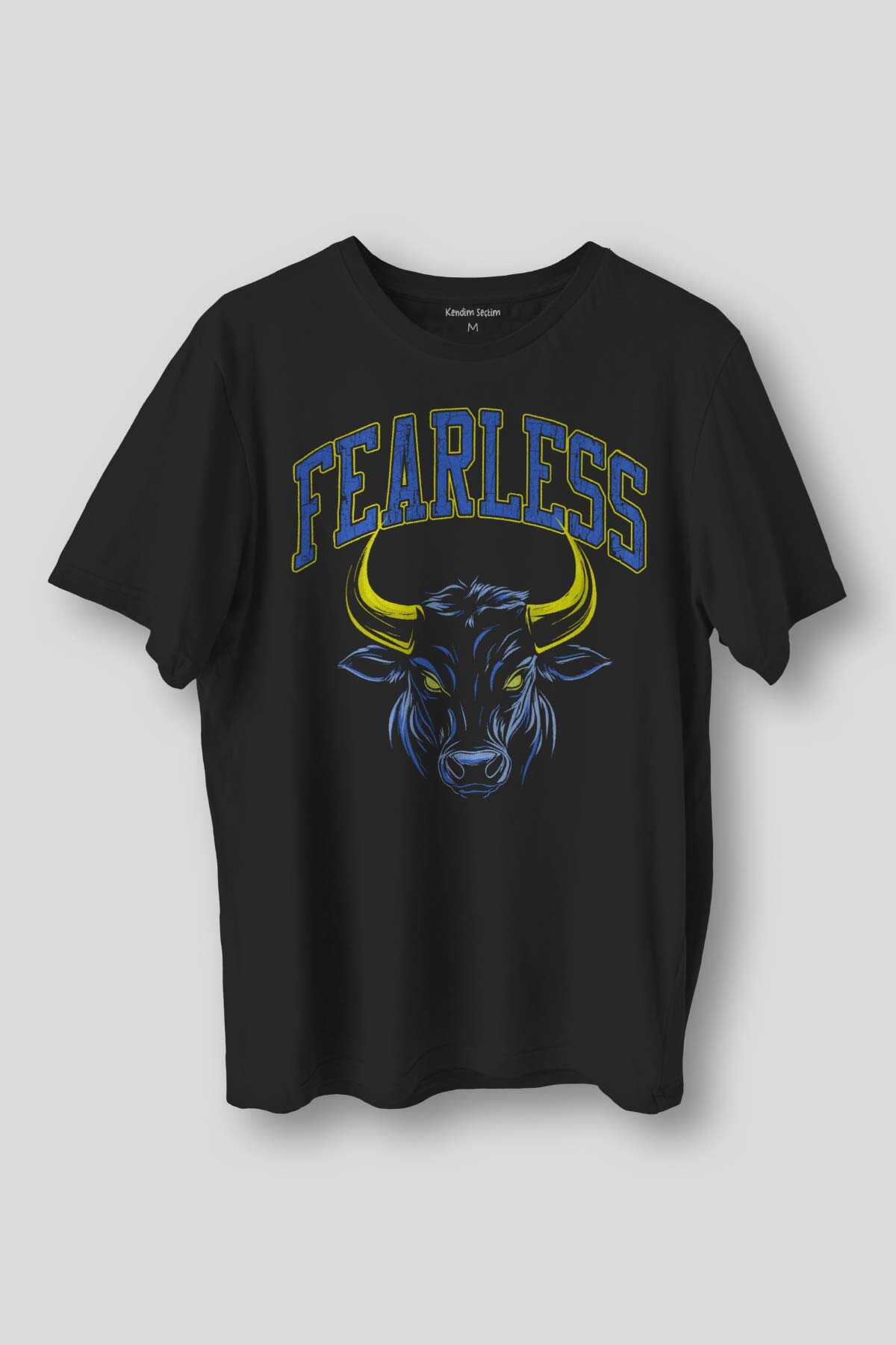 Siyah Tişört Fearless Boğa Bull 1907 Sarı Lacivert Gym Spor Korkusuz Yazı Baskılı Unisex T-shirt