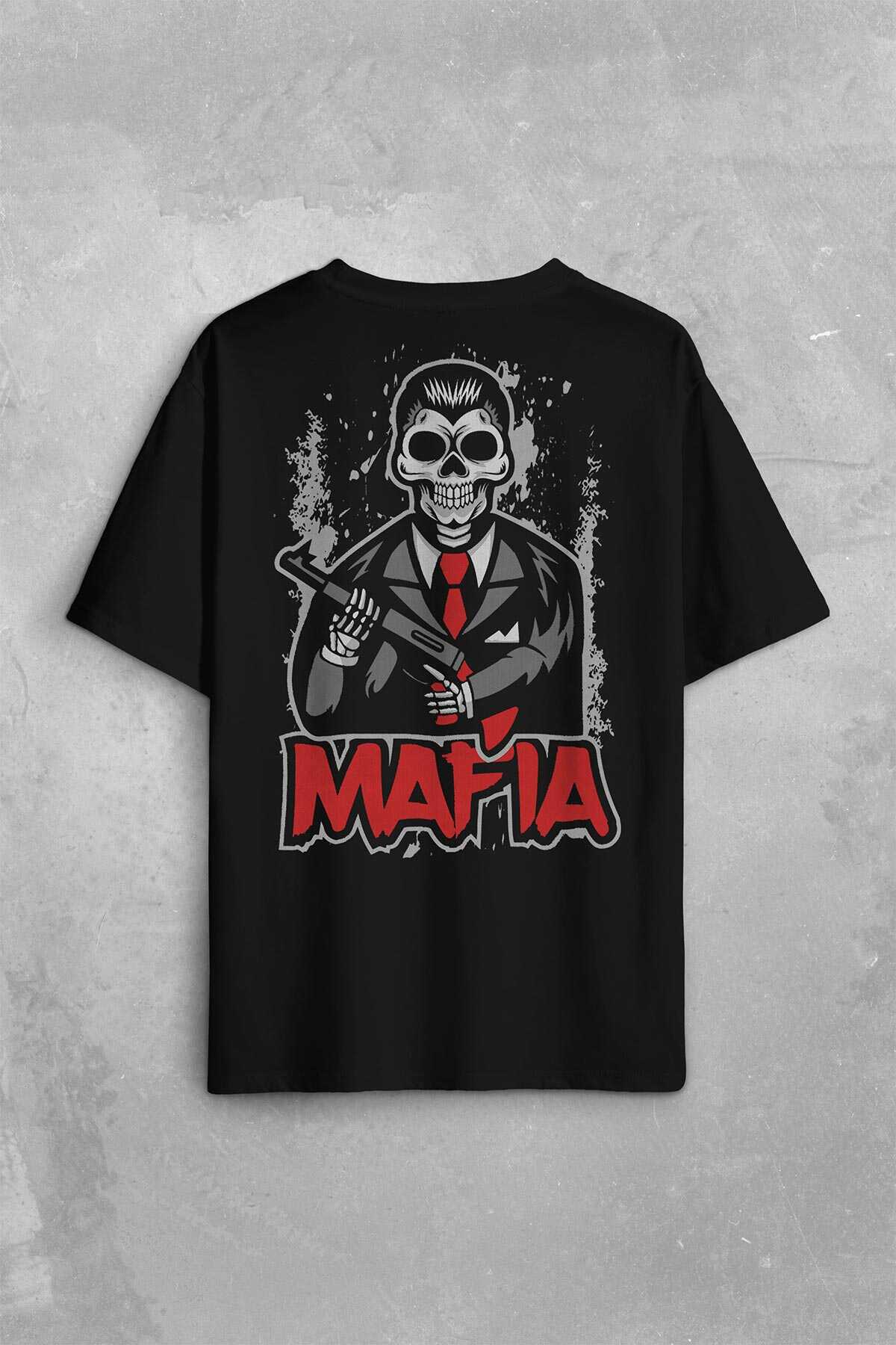 Skull Ganster Mafia Temalı Silahlı Adam Sırt Ön Baskılı Oversize Tişört Unisex T-Shirt