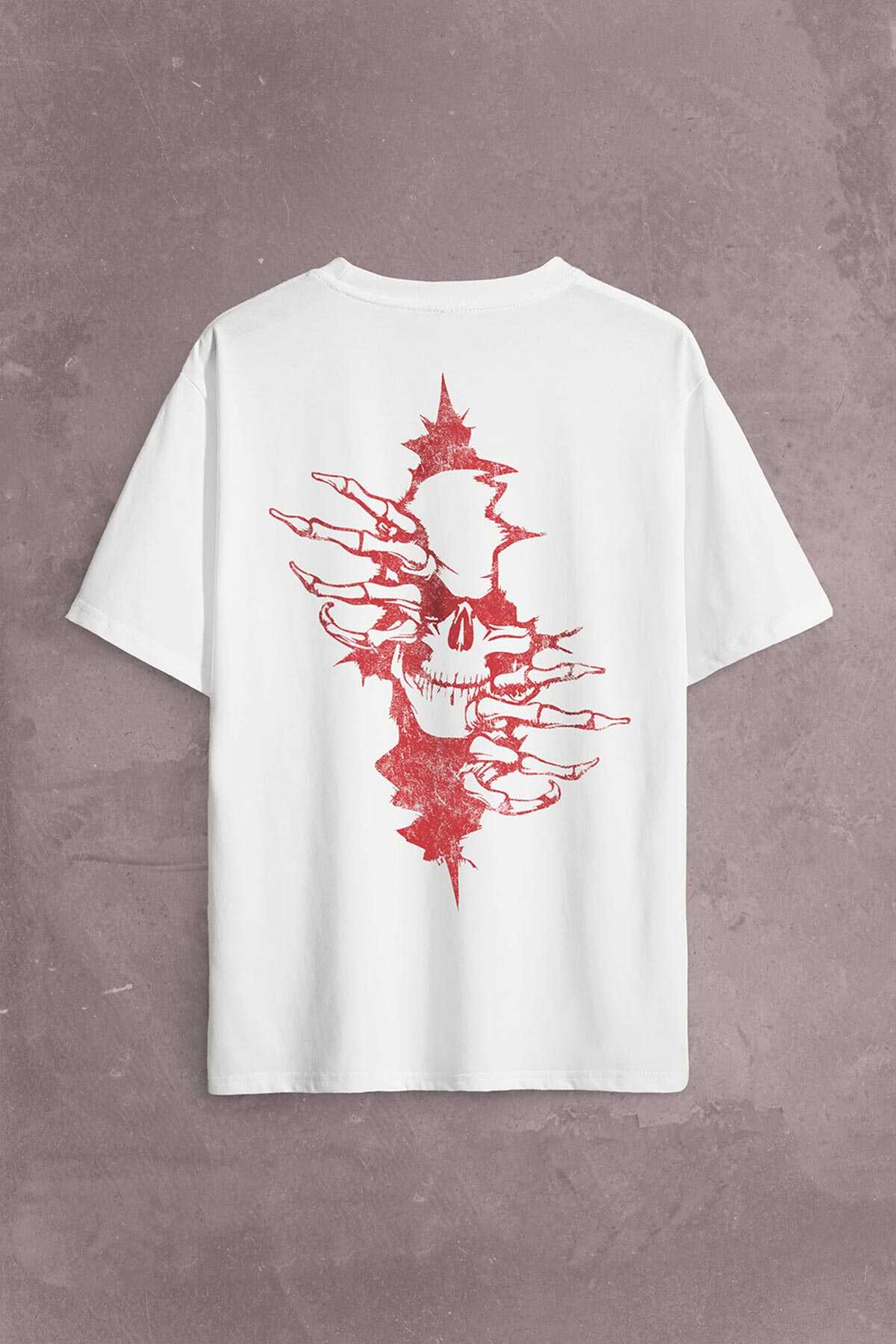 Skull In The Wall Kurukafa Sokak Rock Metallica Sırt Ön Baskılı Oversize Tişört Unisex T-shirt
