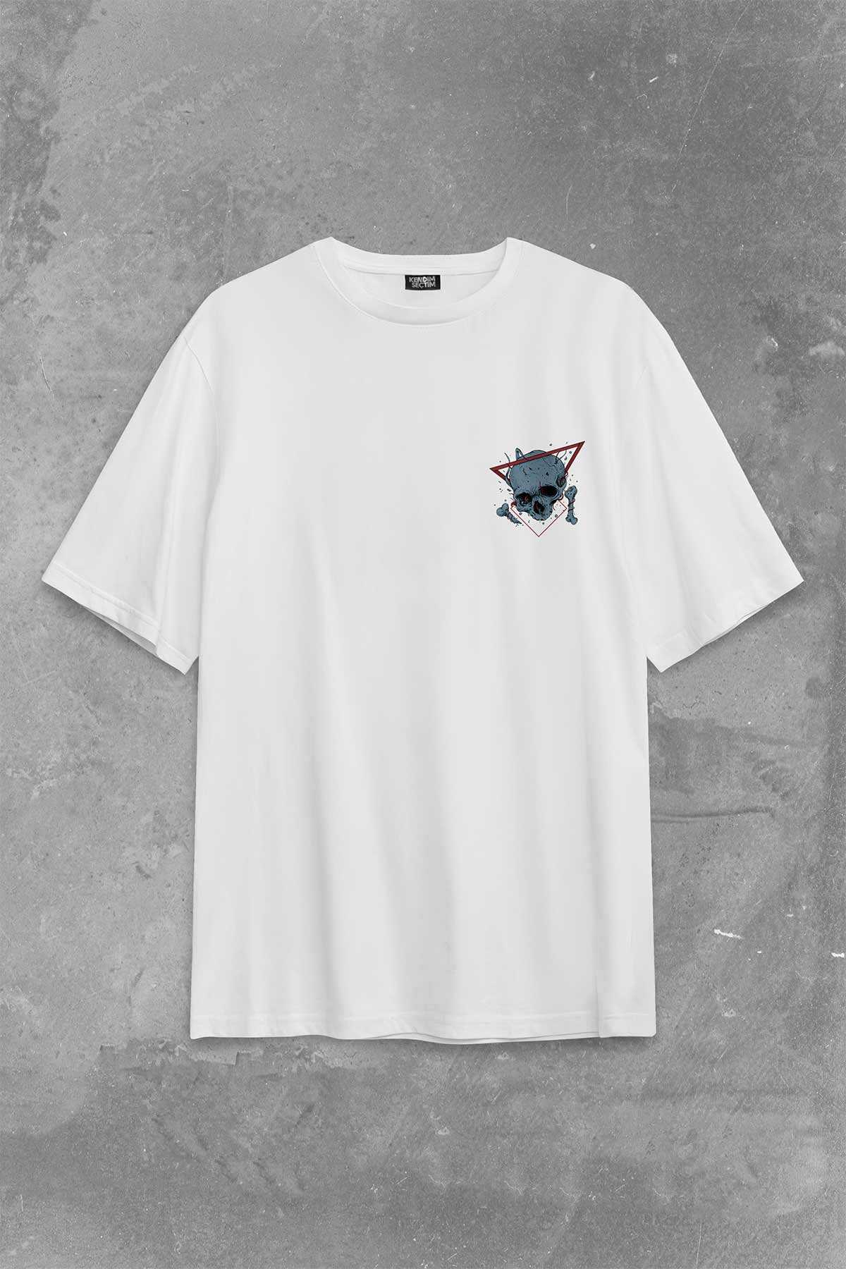 Skull Kuru Kafa Urban Street Culture Minimal Sırt Ön Baskılı Oversize Tişört Unisex T-Shirt