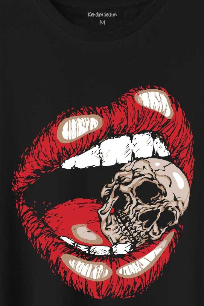 Skull Kuru Kafa Wampir Dudak Kadın Dudağı Baskılı Tişört Unisex T-Shirt