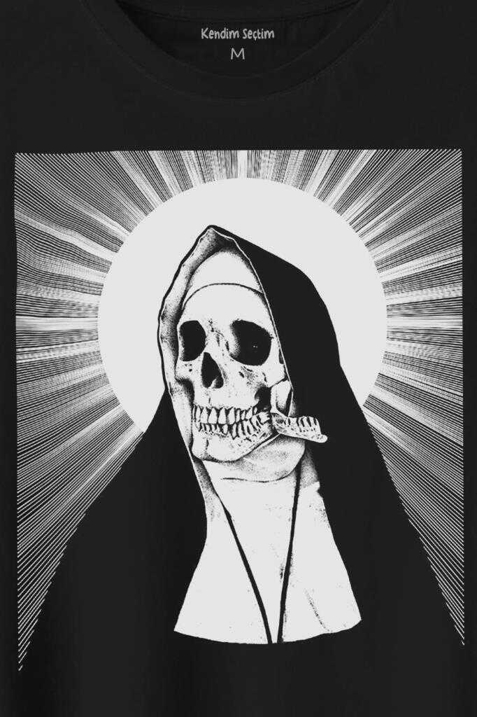 Skull Rahibe Kuru Kafa Gothic Dark Baskılı Tişört Unisex T-Shirt