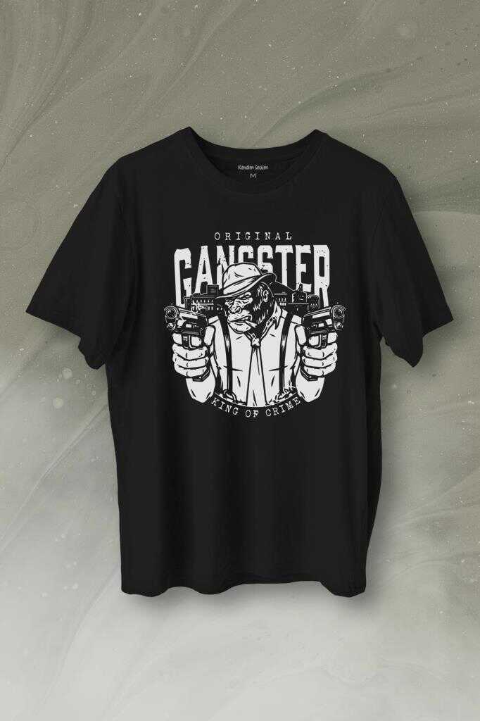 Smoking Gorilla Sigara İçen Katil Maymun Ganster Mafya Baskılı Tişört Unisex T-Shirt