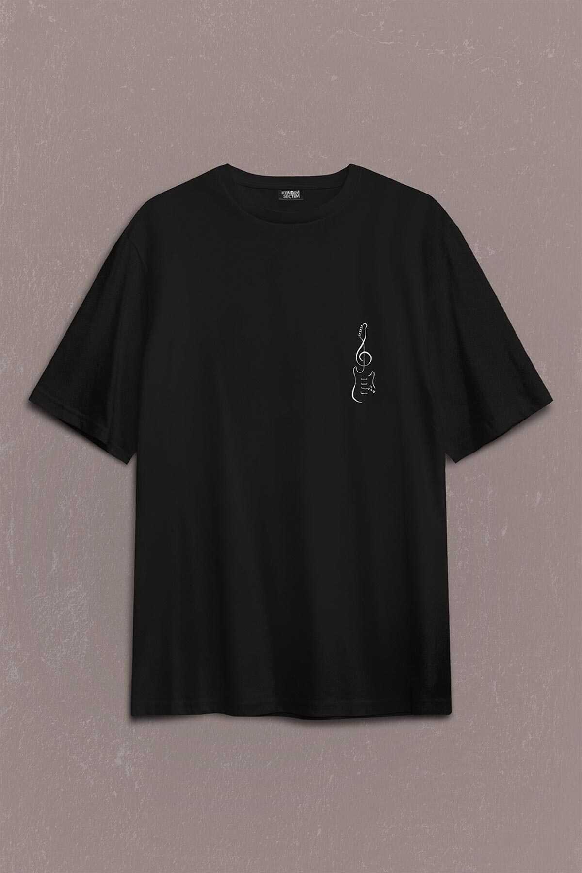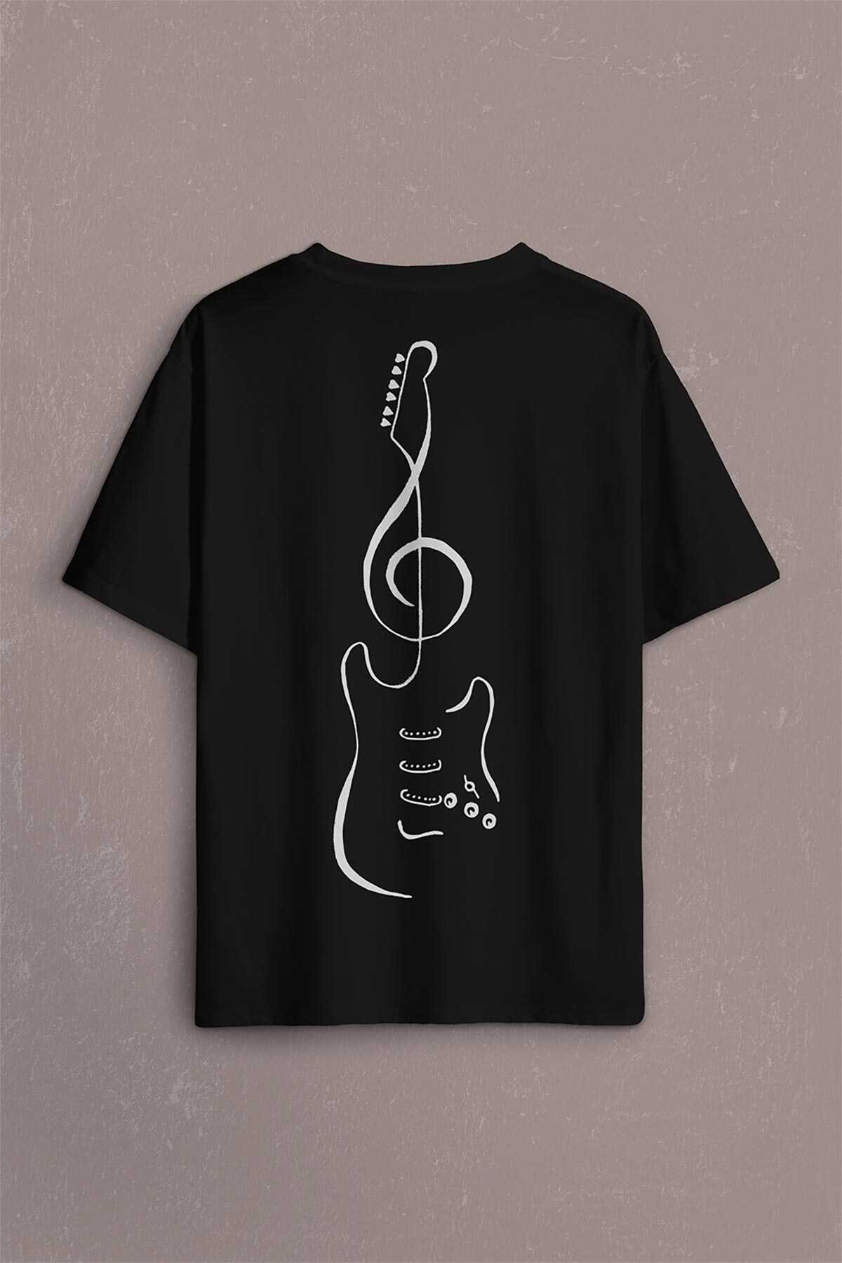 Sol Anahtarı Elektro Gitar Müzik Nota Metallica Sırt Ön Baskılı Oversize Tişört Unisex T-Shirt