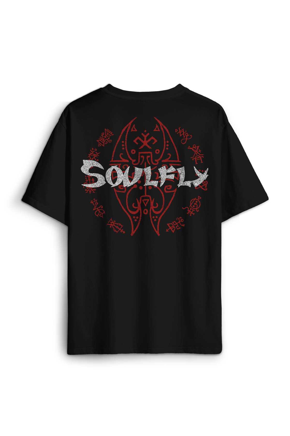 - Soulfly Metal Music Rock Müzik Pamuklu Baskılı Oversize T-shirt Siyah Unisex Tişört - OVR12S-4444