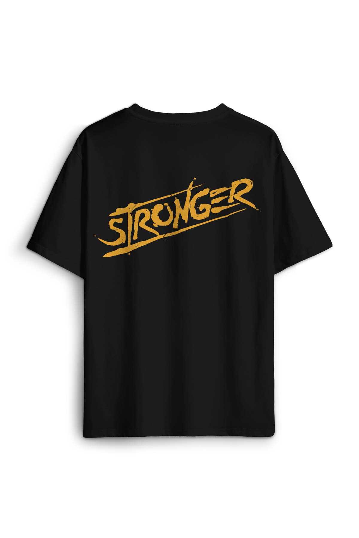 Stronger Daha Güçlü Sporcu Gym Fitness Spor Sırt Ön Baskılı Oversize Tişört Unisex T-Shirt