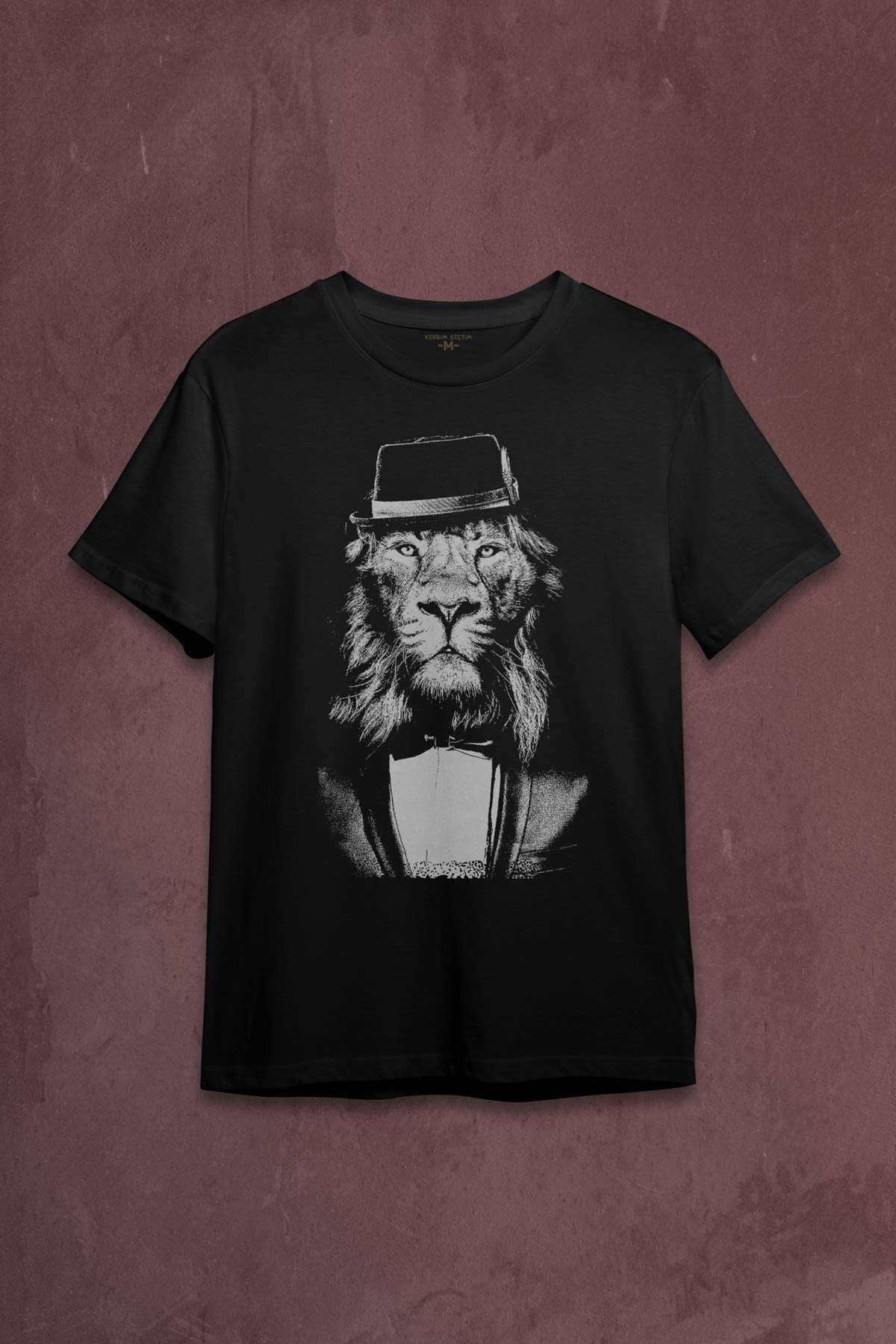 Suit Up Takım Elbiseli Aslan Modern Kıravat Arslan Baskılı Tişört Unisex T-shirt