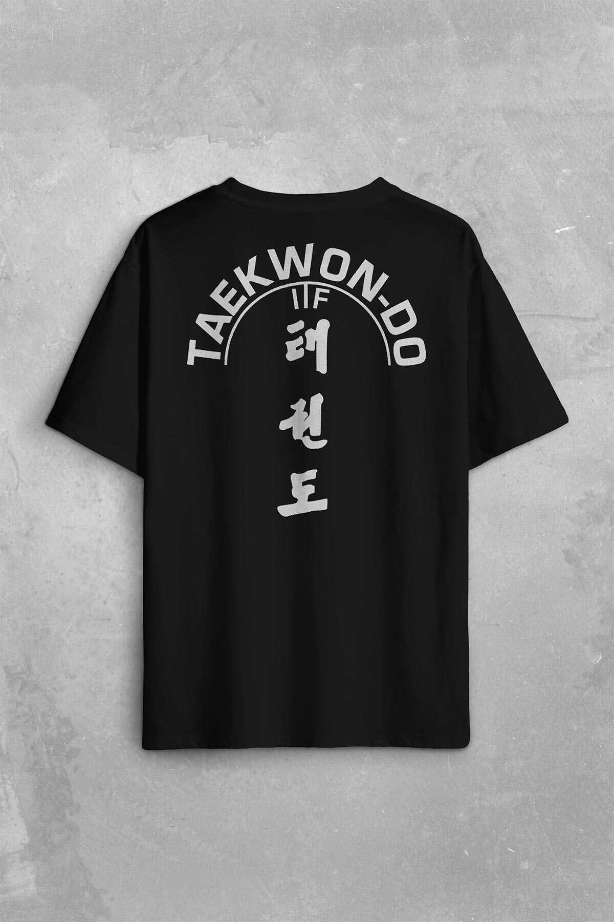 Taekwondo Tekvando Taekwon-Do Dövüşçü Sırt Ön Baskılı Oversize Tişört Unisex T-Shirt