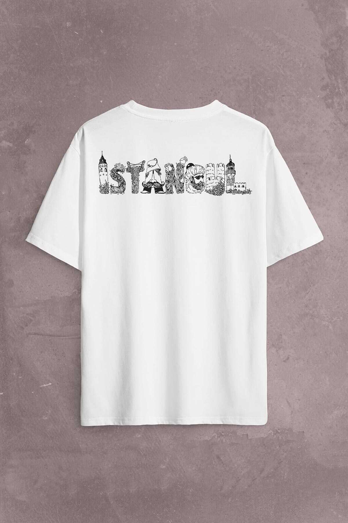 Tarihi İstanbul Silüet Tasarım Osmanlı Sırt Ön Baskılı Oversize Tişört Unisex T-Shirt