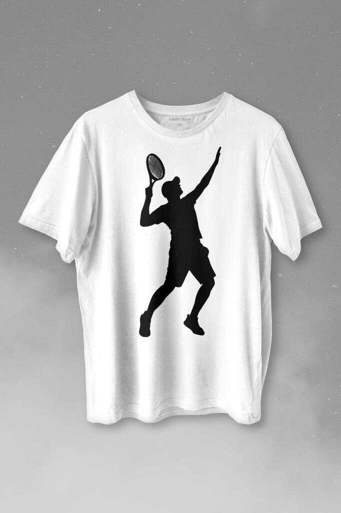 Tennis Player Tenis Raket Oyuncusu Silüet Baskılı Tişört Unisex T-shirt