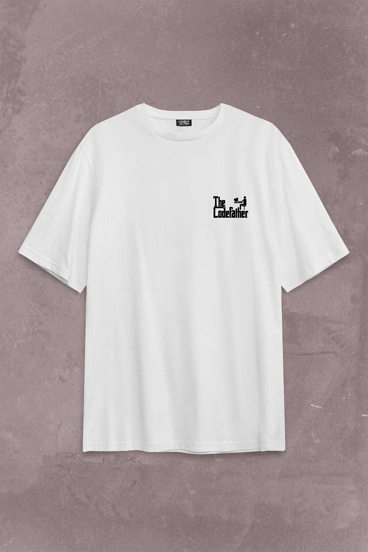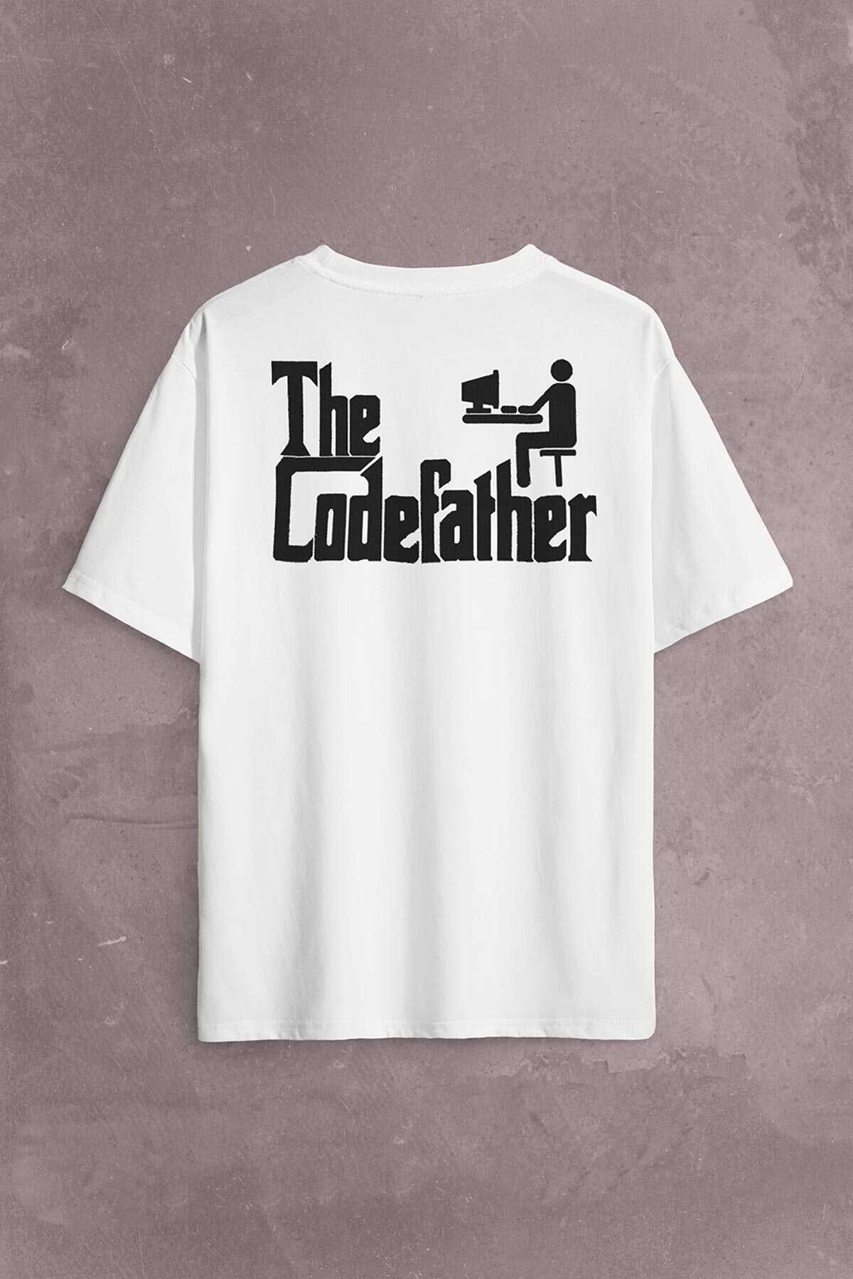 The Codefather Godfather Bilgisayar Code Korsan Hacker Yazılımcı Sırt Ön Baskılı Oversize Tişört Unisex T-Shirt