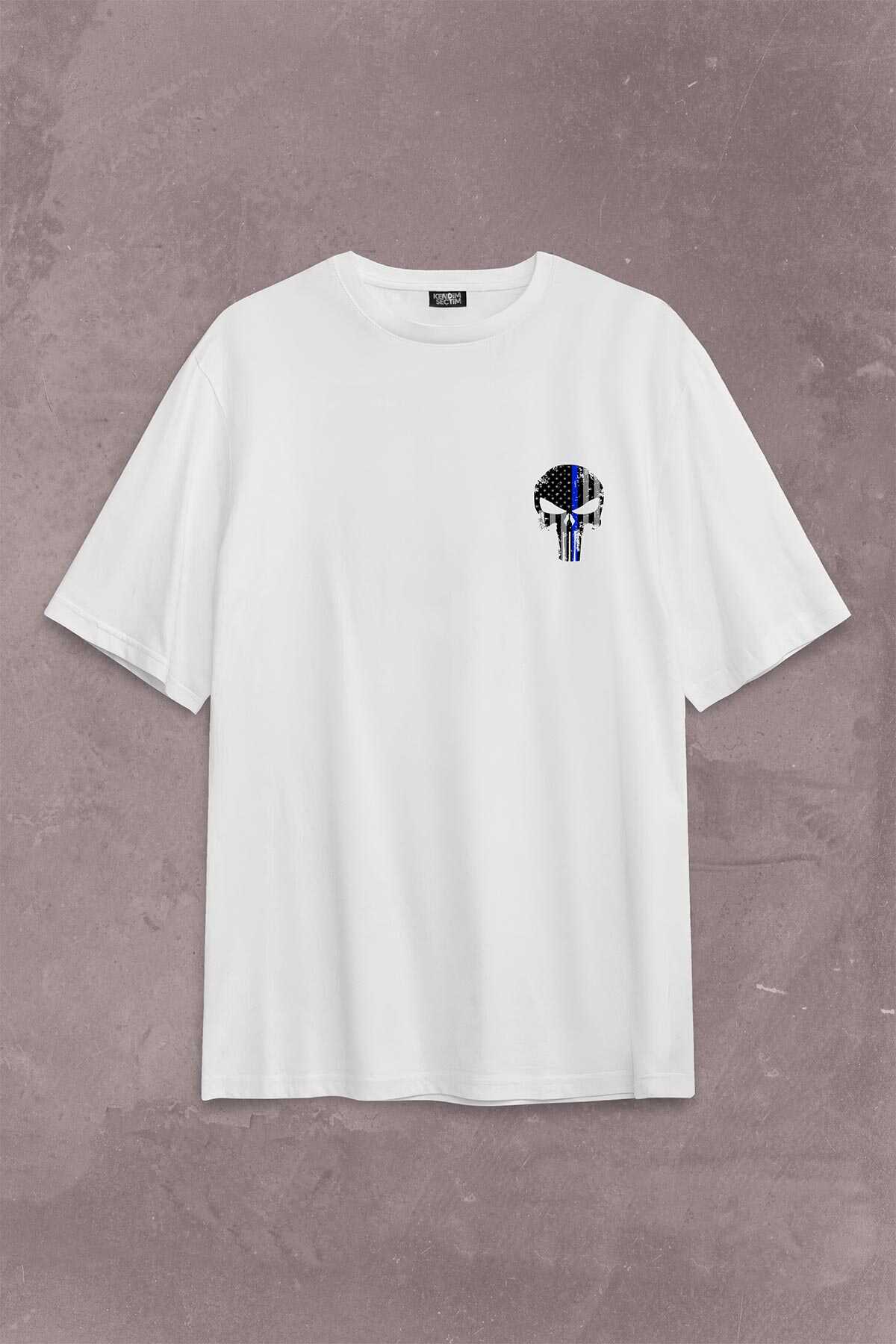 Siyah Oversize Tişört Punisher Cezalandırıcı Frank Castle Sırt Ön Baskılı Unisex T-Shirt