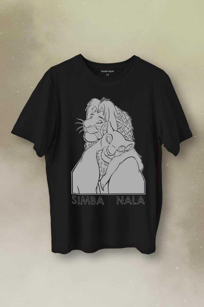 The Lion King Simba And Nala Beyaz Baskılı Tişört Unisex T-Shirt