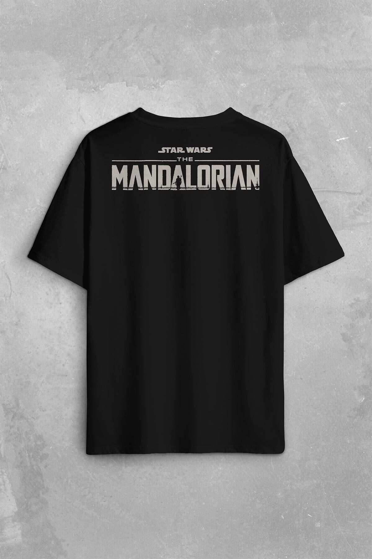 The Mandalorian Bebek Yoda Cep Tasarımı Star Wars Sırt Ön Baskılı Oversize Tişört Unisex T-Shirt