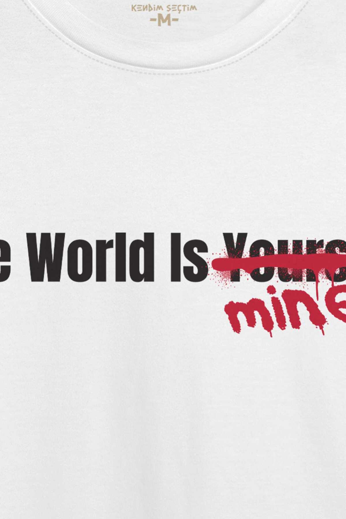 The World Is Mine Yazı Baskılı Tişört Sokak Stil Grafitti Street Unisex Beyaz T-shirt