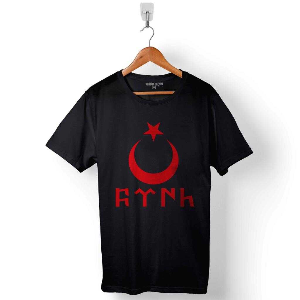 Türk Bayrağı Göktürkçe Ay Yıldız Hilal Baskılı Tişört Unisex T-Shirt