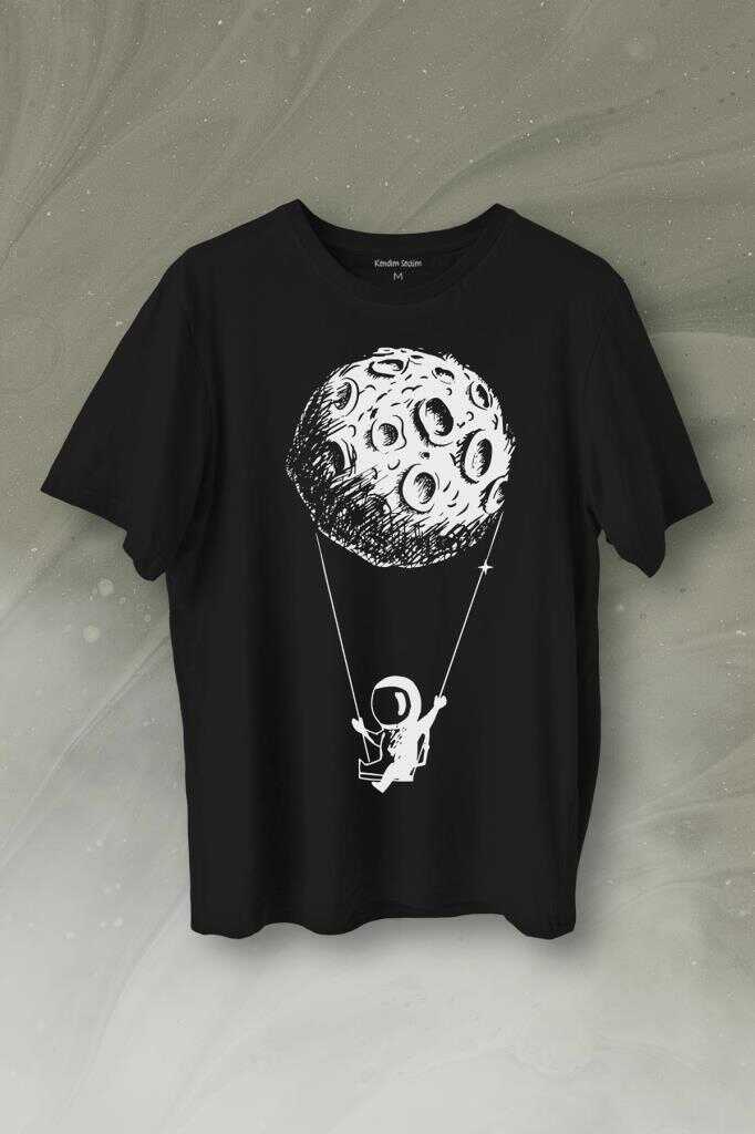 Uçan Balon Gezegen Minimal Astronot Uzay Urban Cosmos Baskılı Tişört Unisex T-Shirt