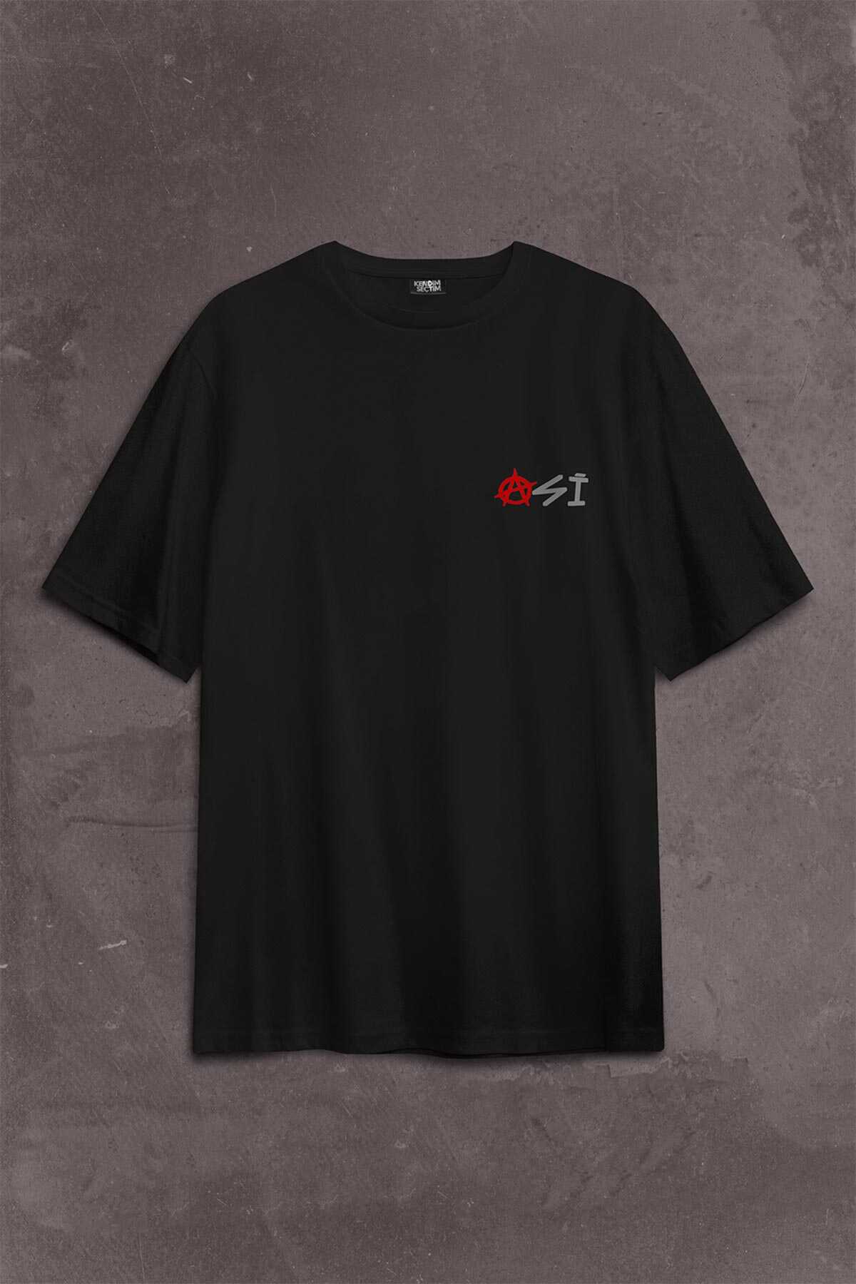 Oversize Siyah Tişört Uçan Kartal Asi Eagle Sırt Ön Baskılı Unisex T-Shirt.