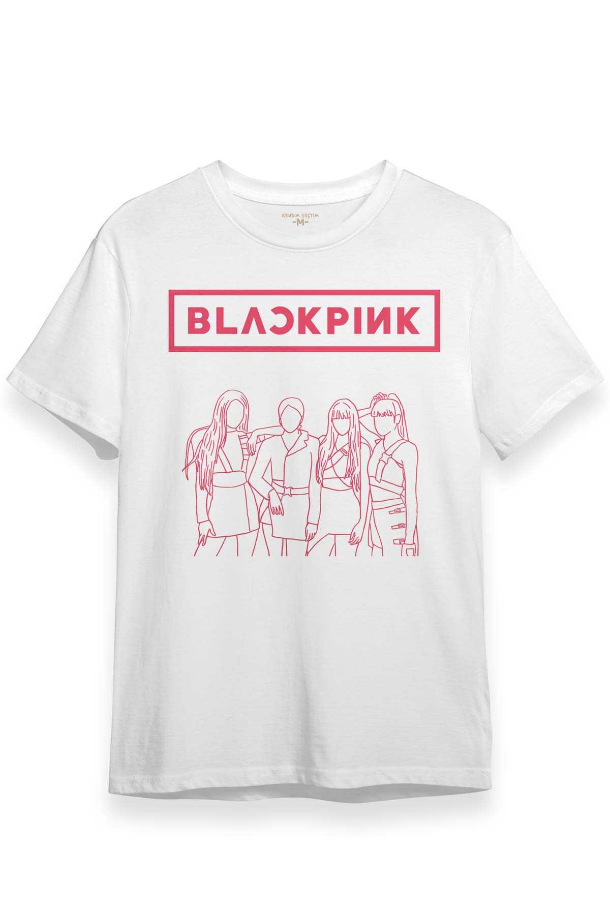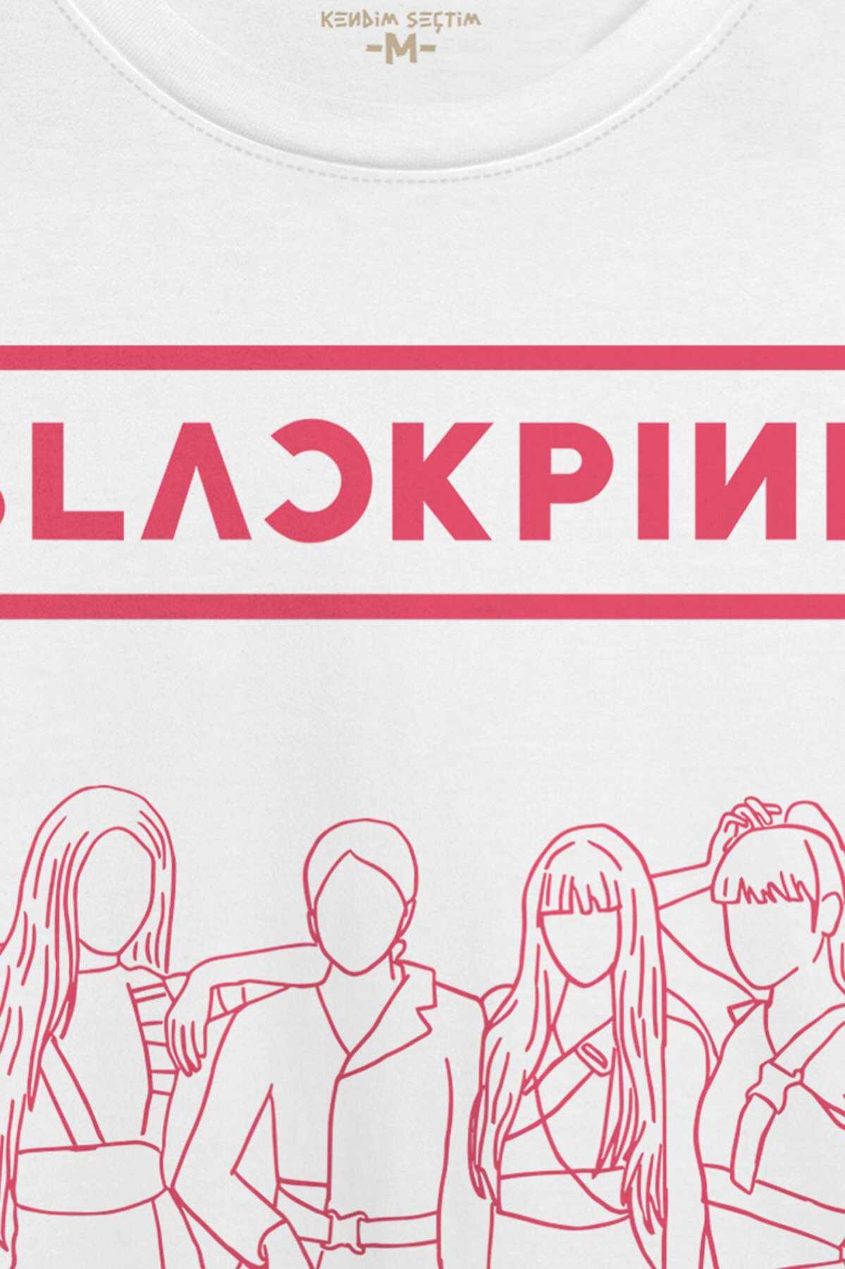 Unisex Beyaz T-shirt BLACKPINK Çizim Kore Music K-POP Baskılı Tişört