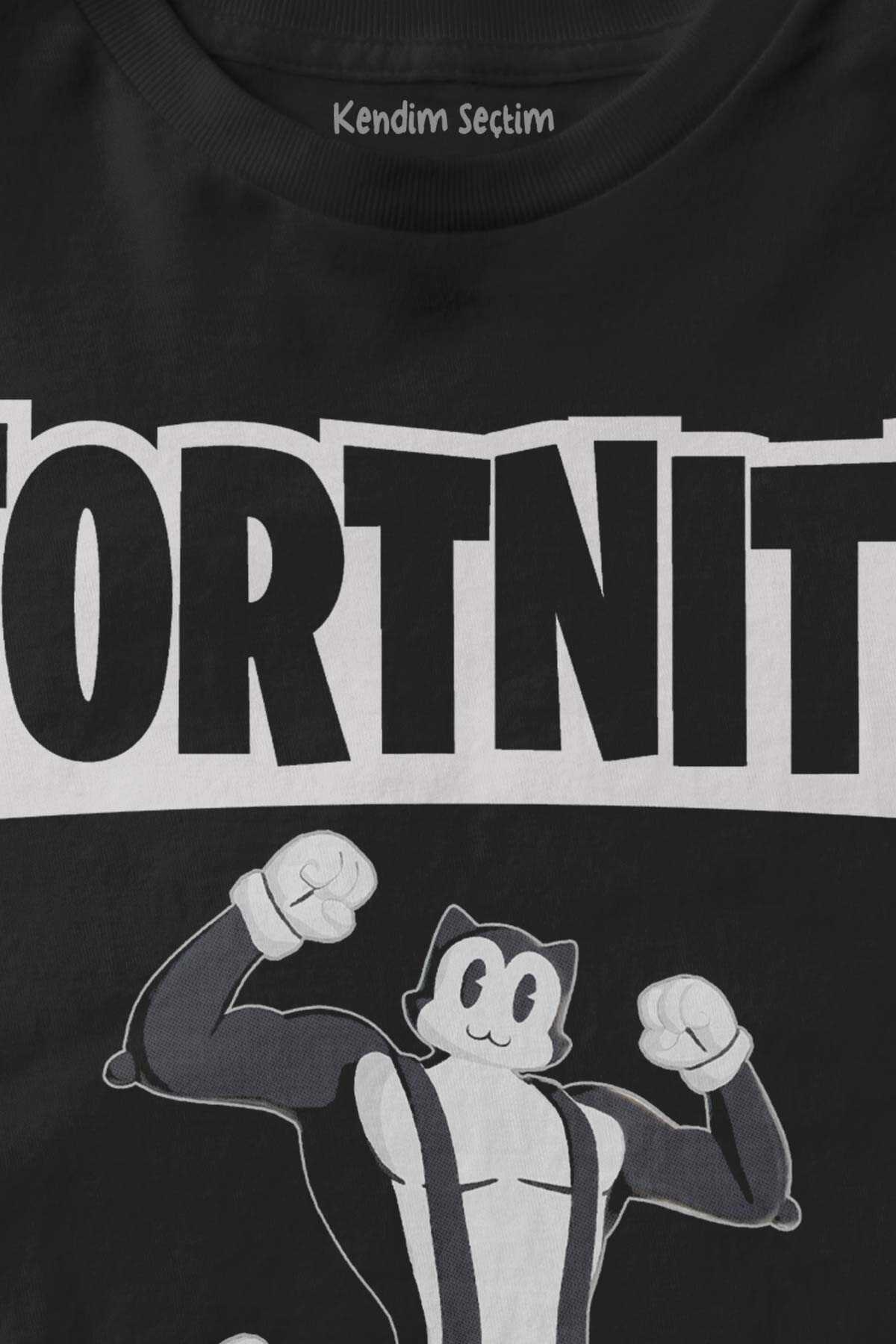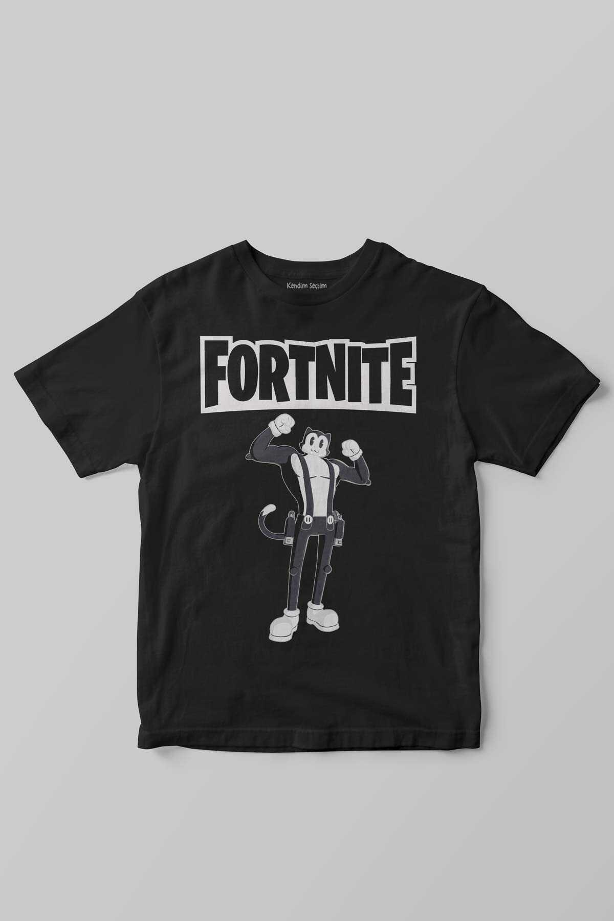 Unisex Siyah Fortnite Kedi Çizgi Tehlikeli Battle Royale Baskılı Warrior Çocuk Tişörtü - T03S4514