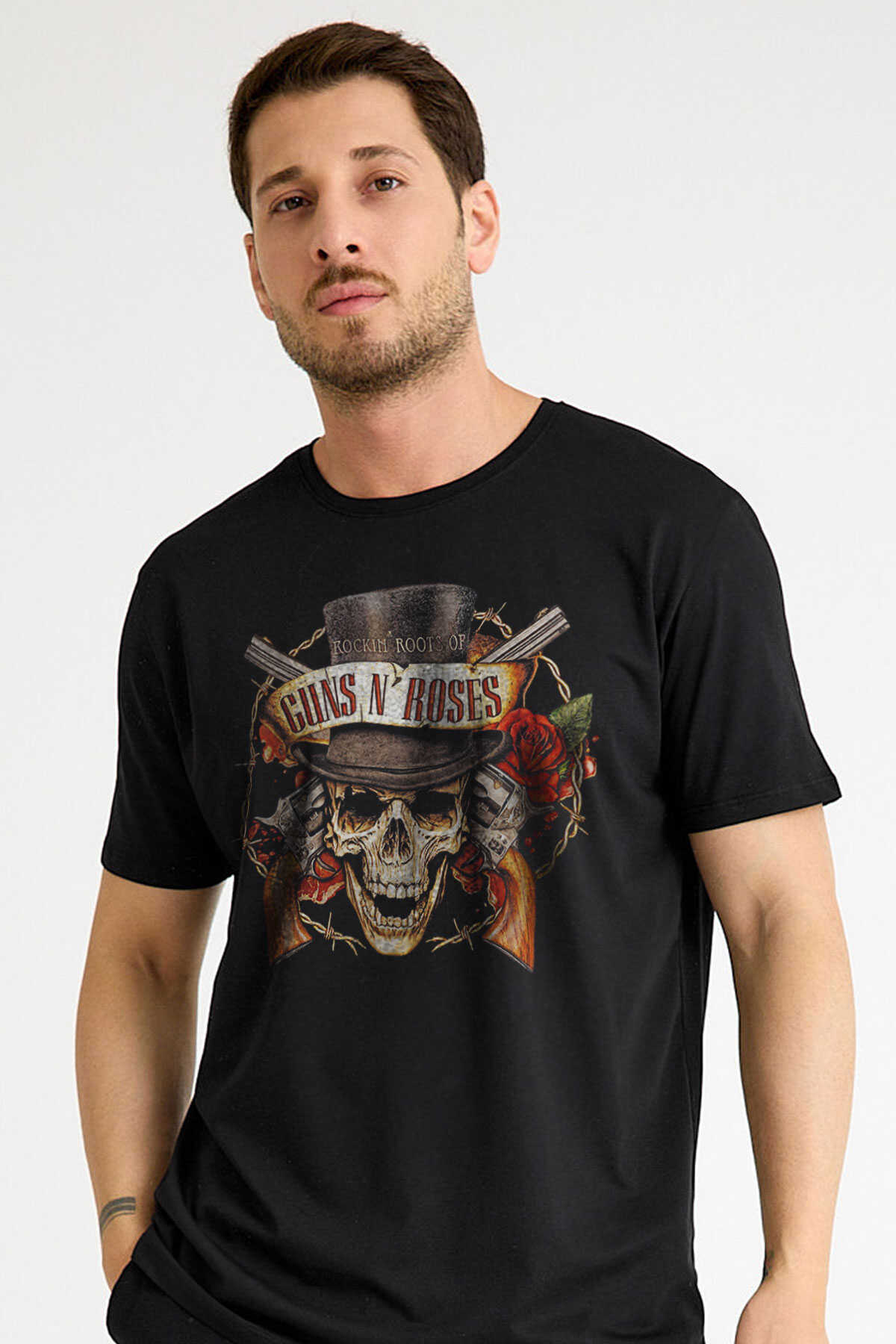 Unisex Siyah Guns N' Roses Baskılı T-shirt Kısa Kollu Tişört