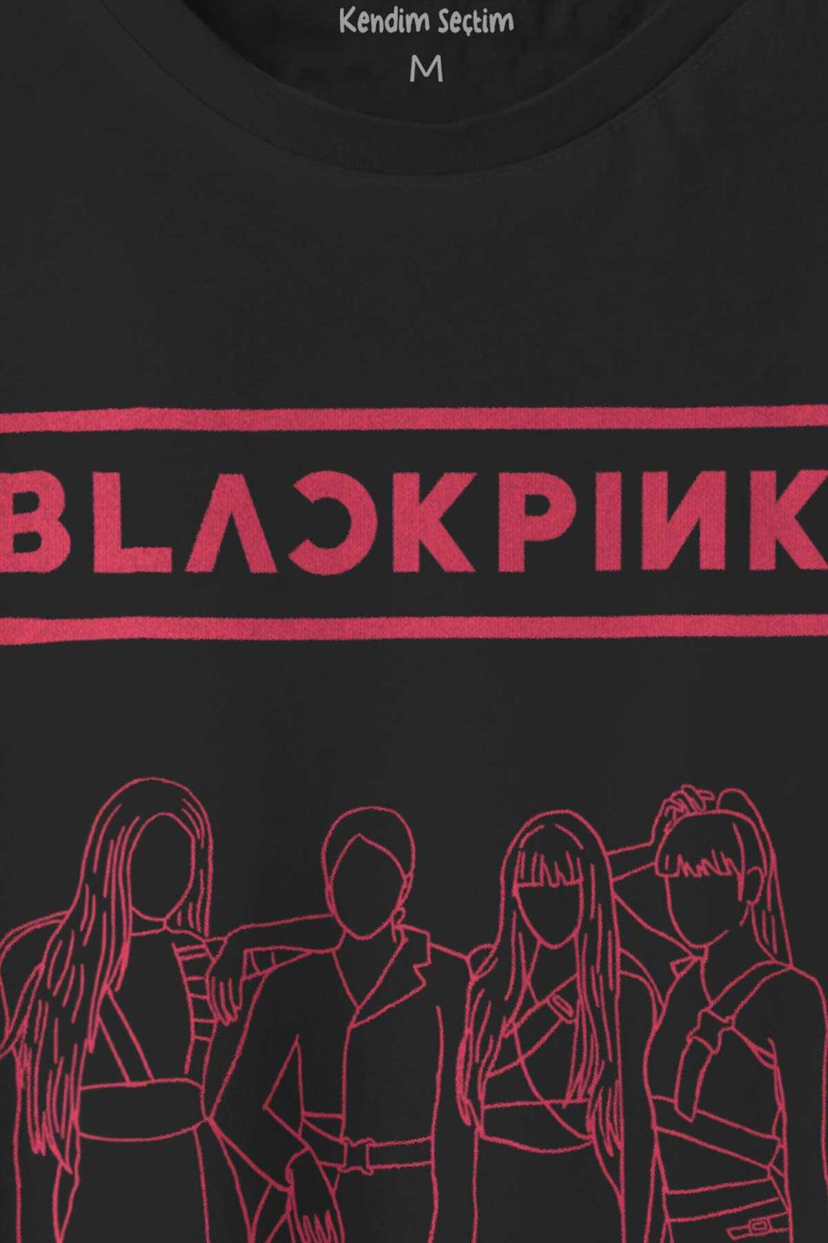 Unisex Siyah T-shirt BLACKPINK Çizim Kore Music K-POP Baskılı Tişört