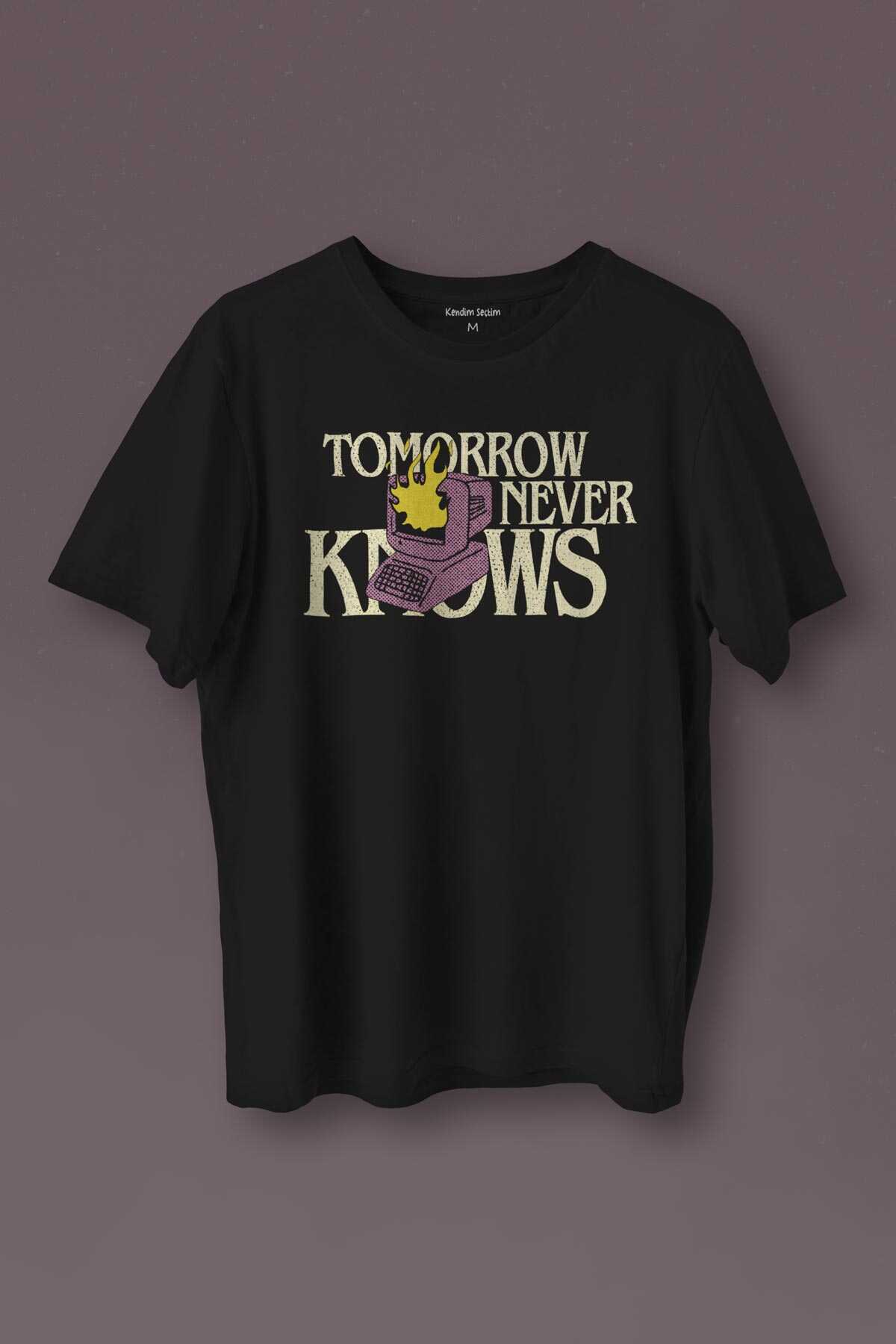 Unisex T-shirt Tomorrow Never Knows y2k Future Vintage Sokak Siyah Baskılı Tişört