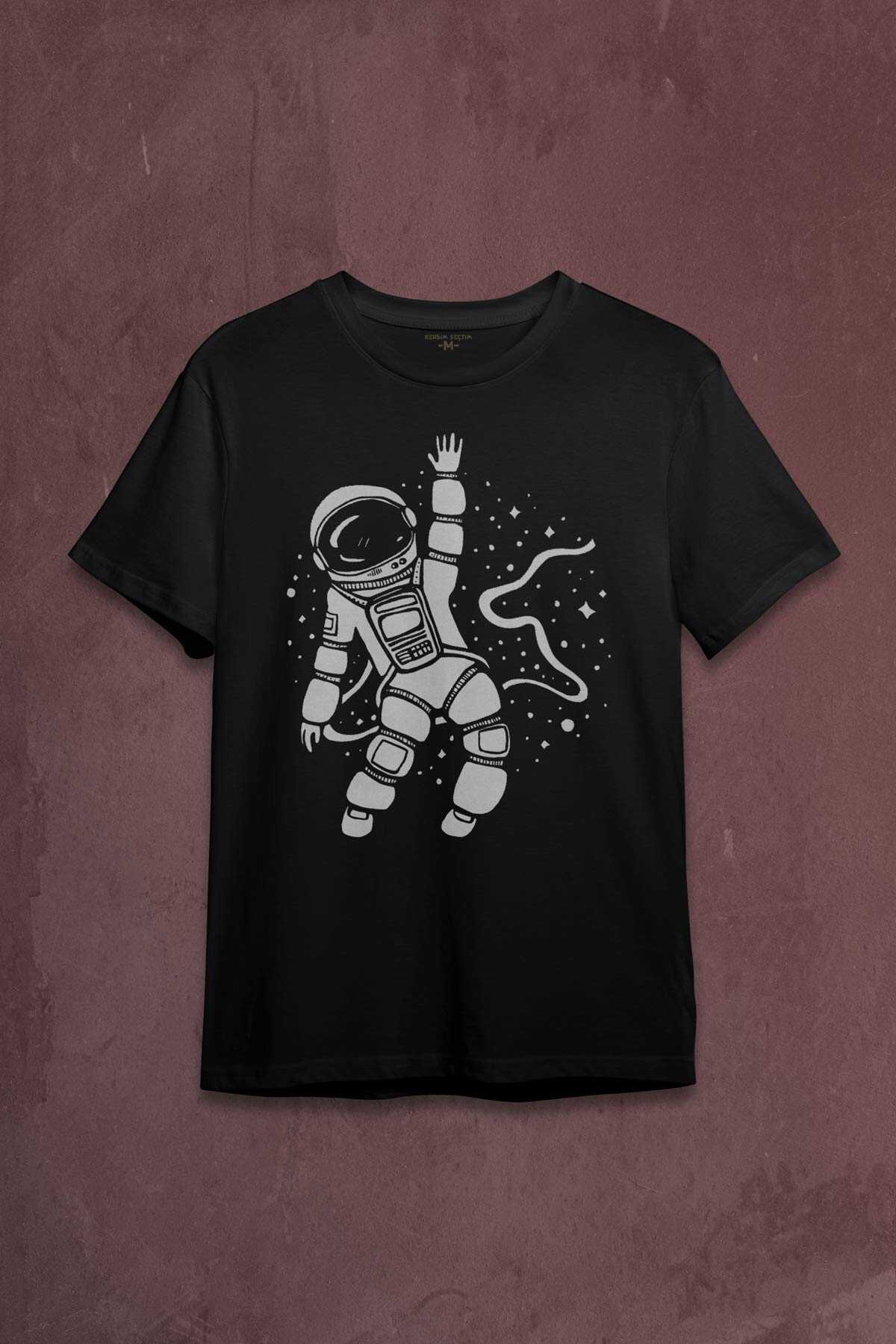 Uzayda El Sallayan Astronot Cosmos Baskılı Tişört Unisex T-shirt