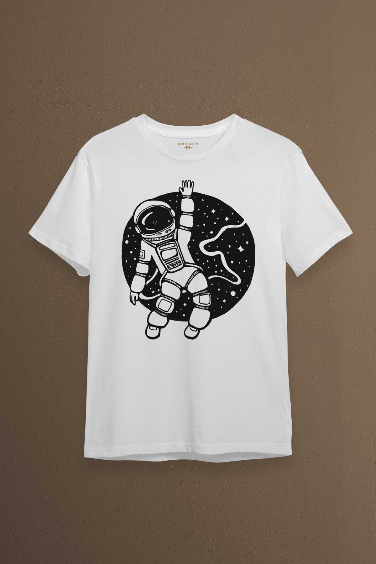 Uzayda El Sallayan Astronot Cosmos Baskılı Tişört Unisex T-shirt