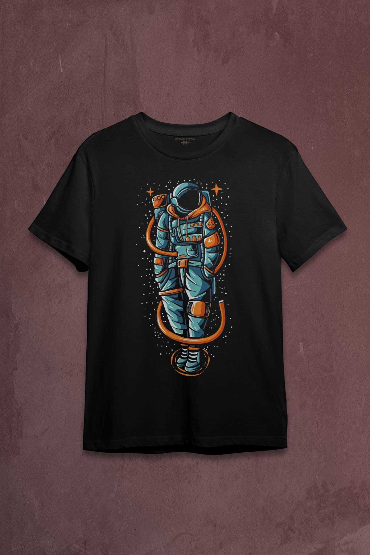 Uzayda Elleri Cebinde AStronot Cosmos Space Nasa Baskılı Tişört Unisex T-shirt