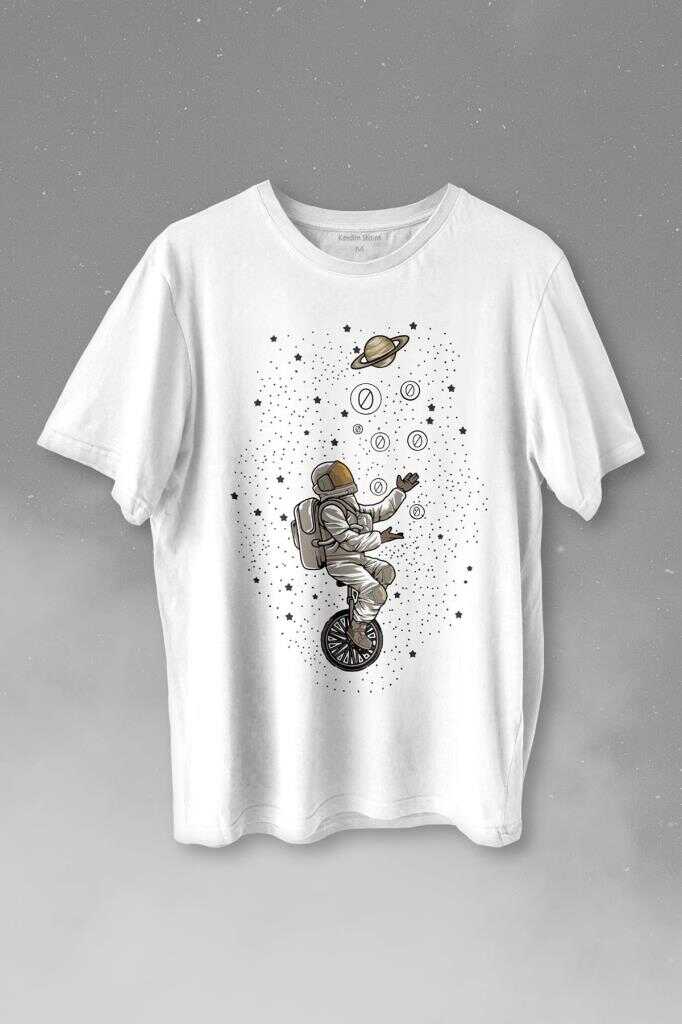 Uzayda Jonglör Astronot Top Çeviren Hokkabaz Cosmos Baskılı Tişört Unisex T-shirt
