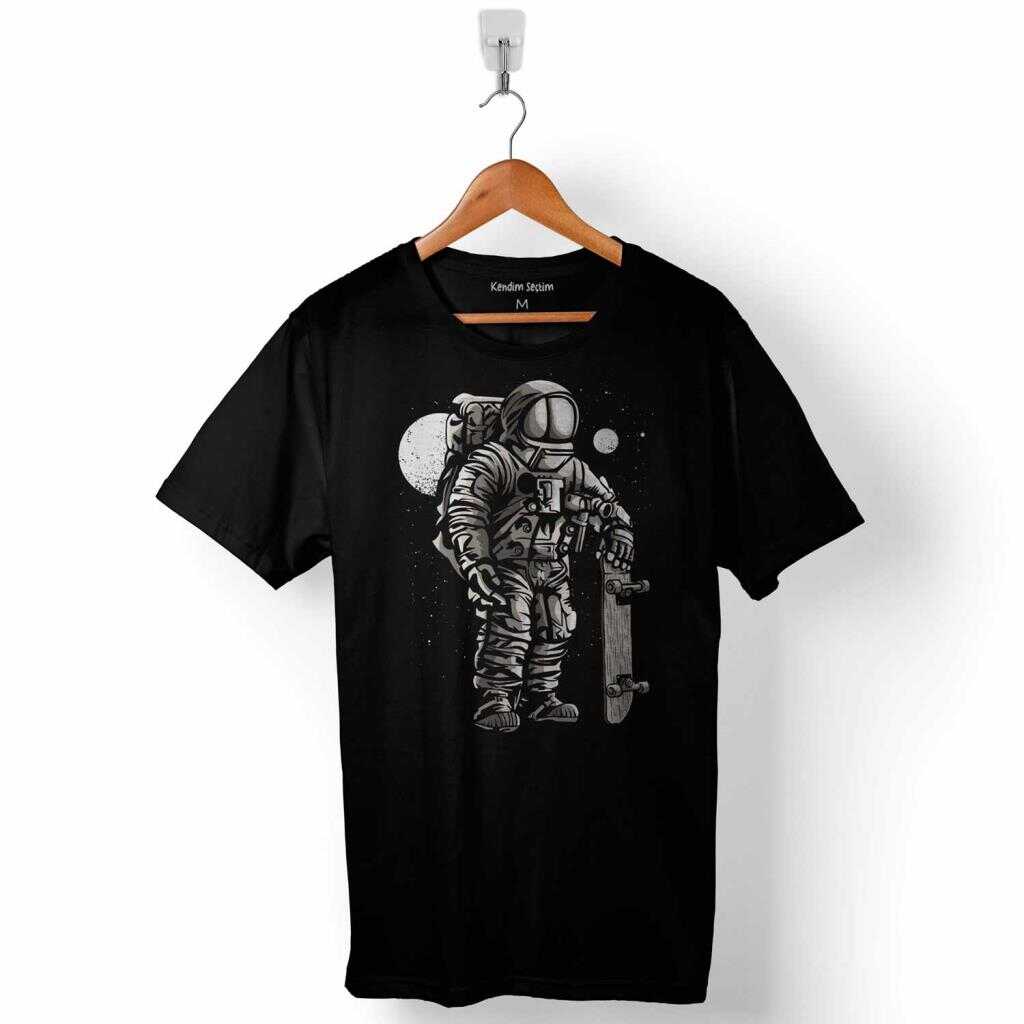 Uzayda Kaykay Astronot Ay Nasa Uzay Cosmos Baskılı Tişört Unisex T-Shirt