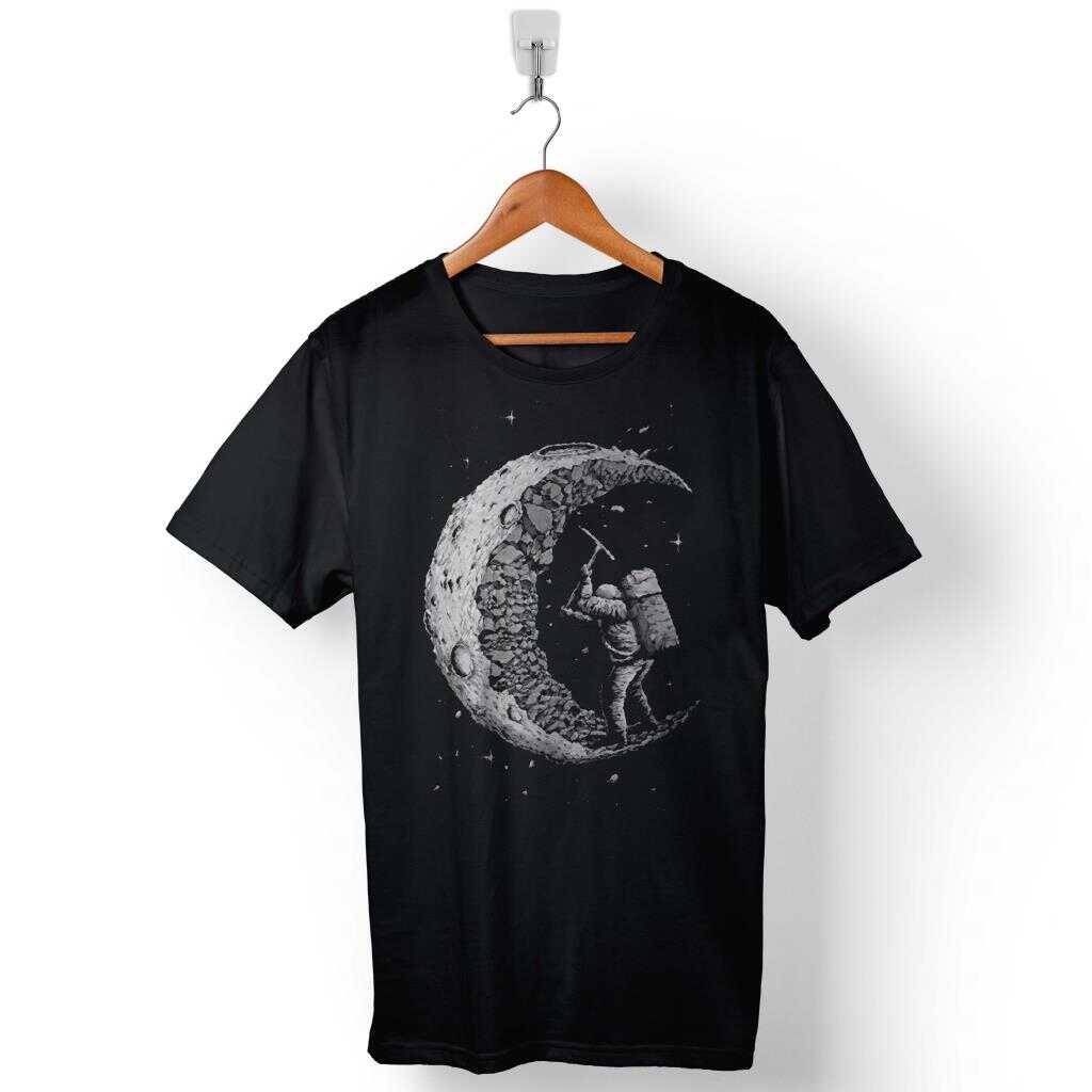 Uzayda Kazma Astronot Cosmos Yarım Ay Nasa Baskılı Tişört Unisex T-Shirt