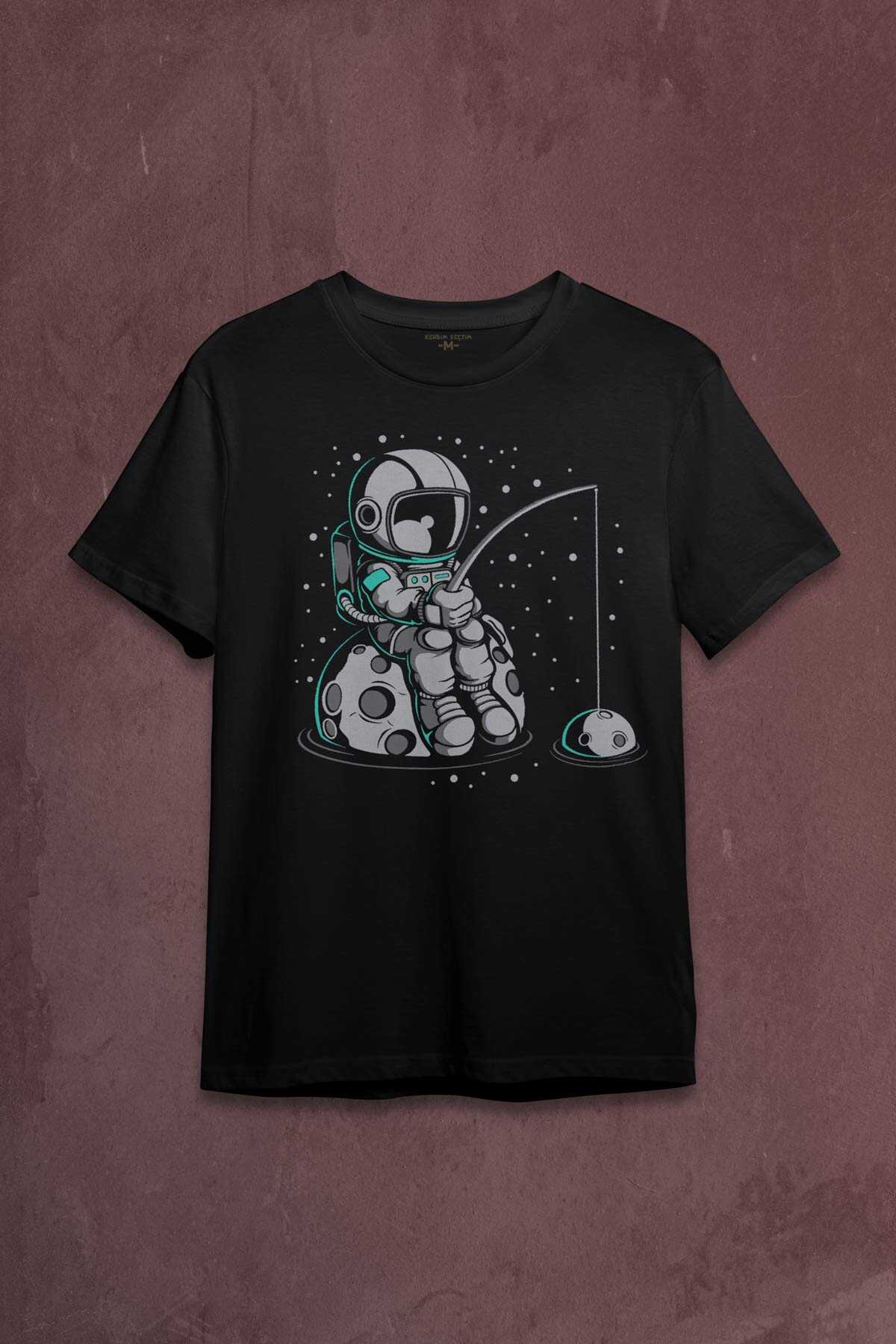 Uzayda Olta Atan Astronot Cosmos Uzay Gezegen Baskılı Tişört Unisex T-shirt