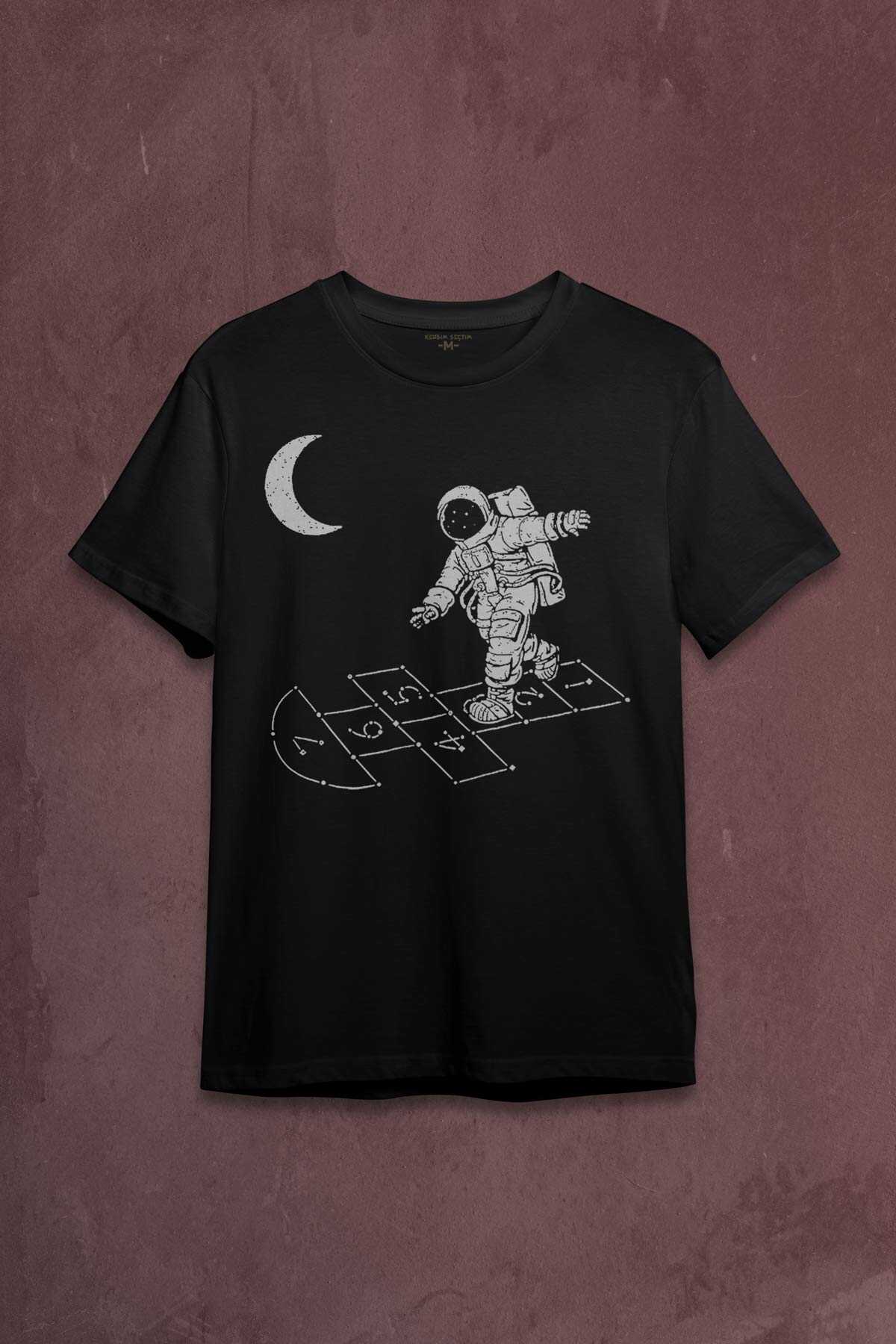 Uzayda Sek Sek Oyun Seksek Astronot Cosmos Baskılı Tişört Unisex T-shirt