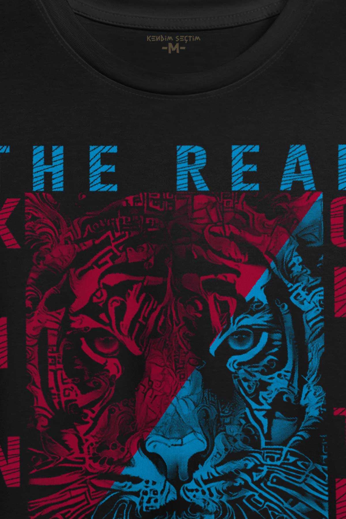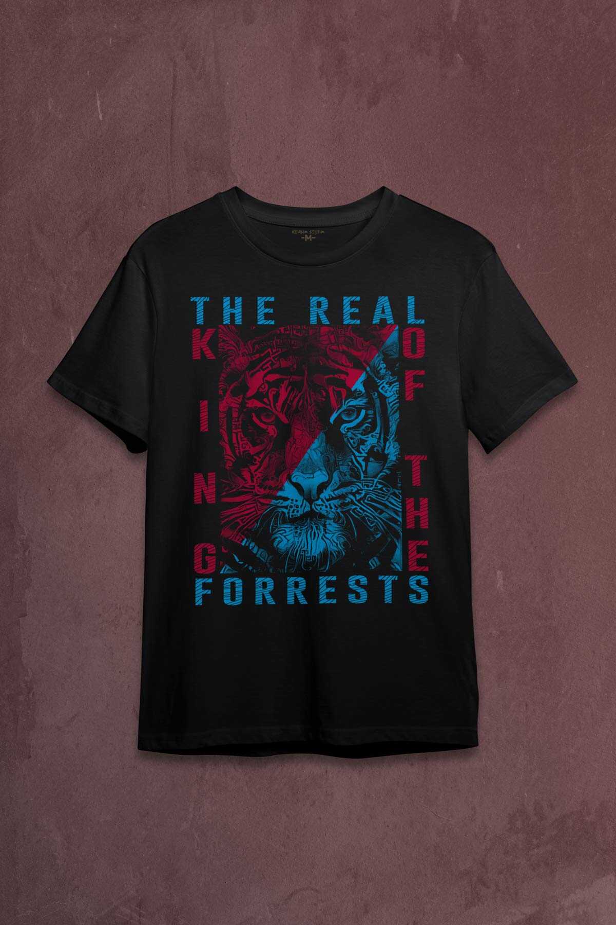 Vahşi Kaplan Trabzon Bordo Mavi Ormanların Gerçek kralı Baskılı Tişört Unisex T-shirt