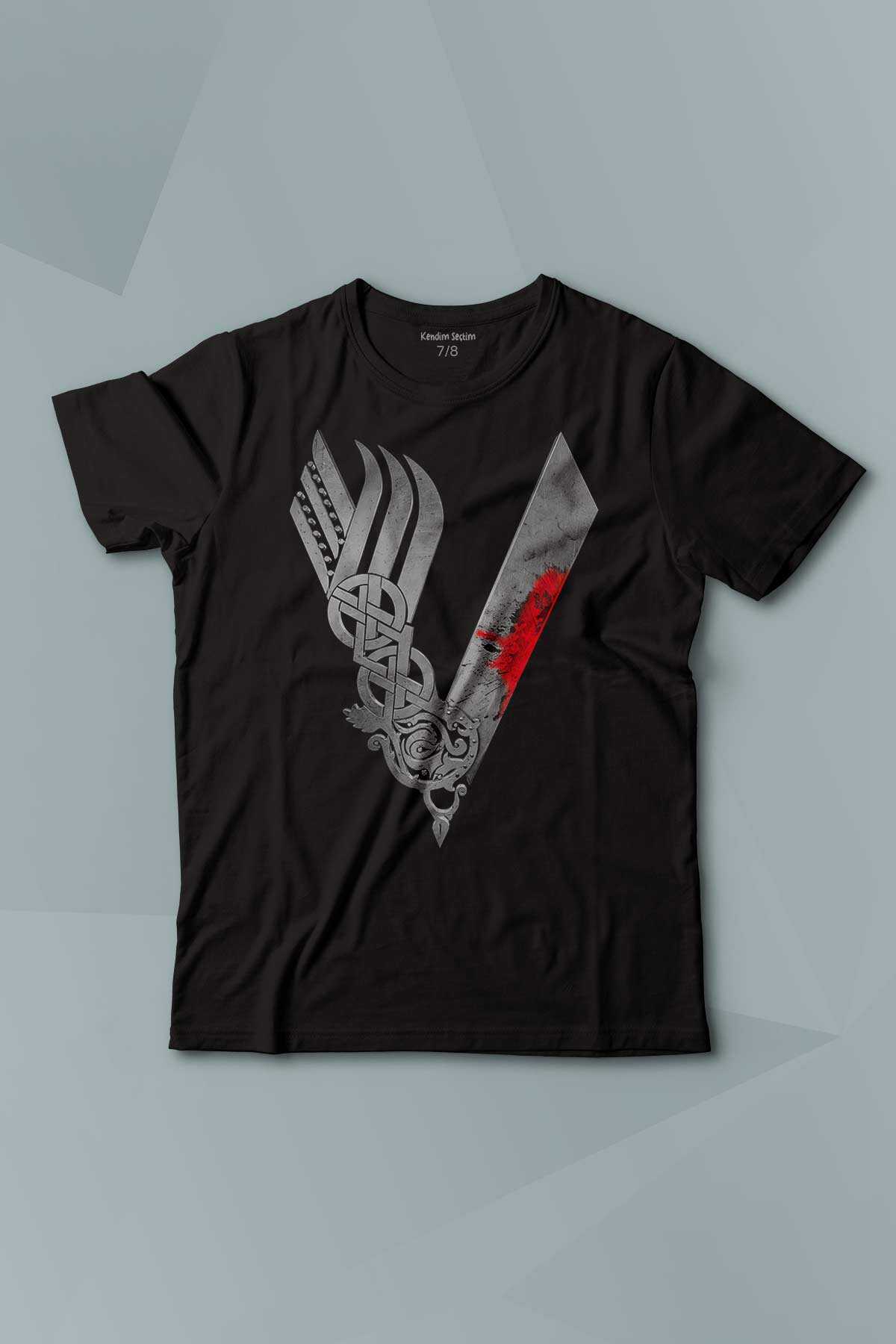 Vikingler Logo Vikings Gri Baskılı Çocuk Tişört Kısa Kollu