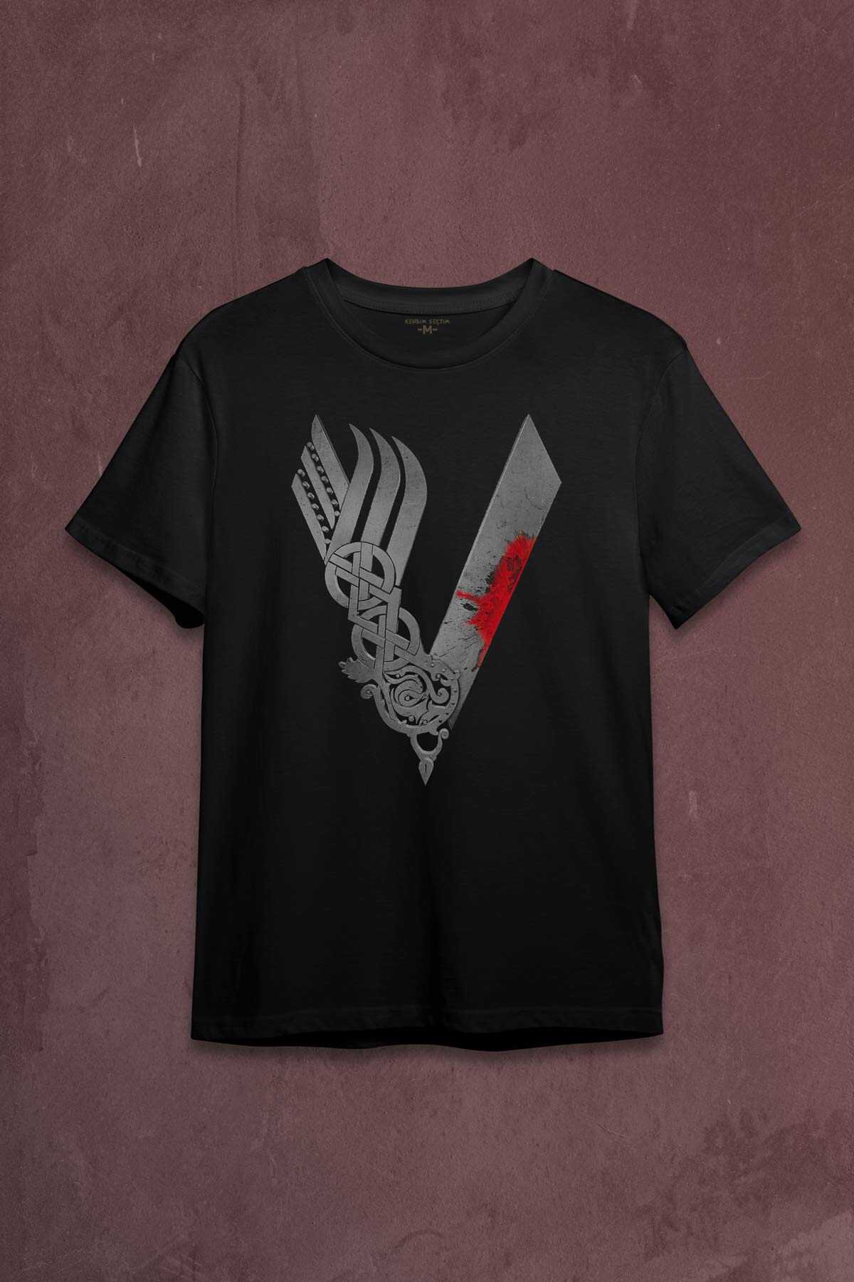 Vikingler Logo Vikings Gri Baskılı Tişört Unisex T-shirt