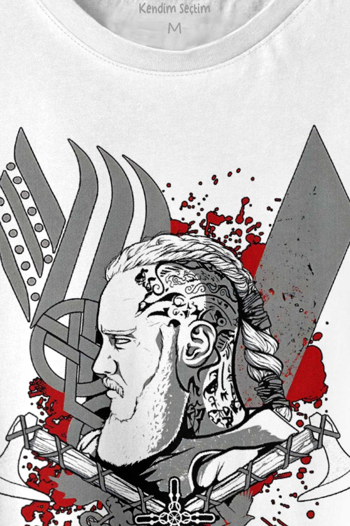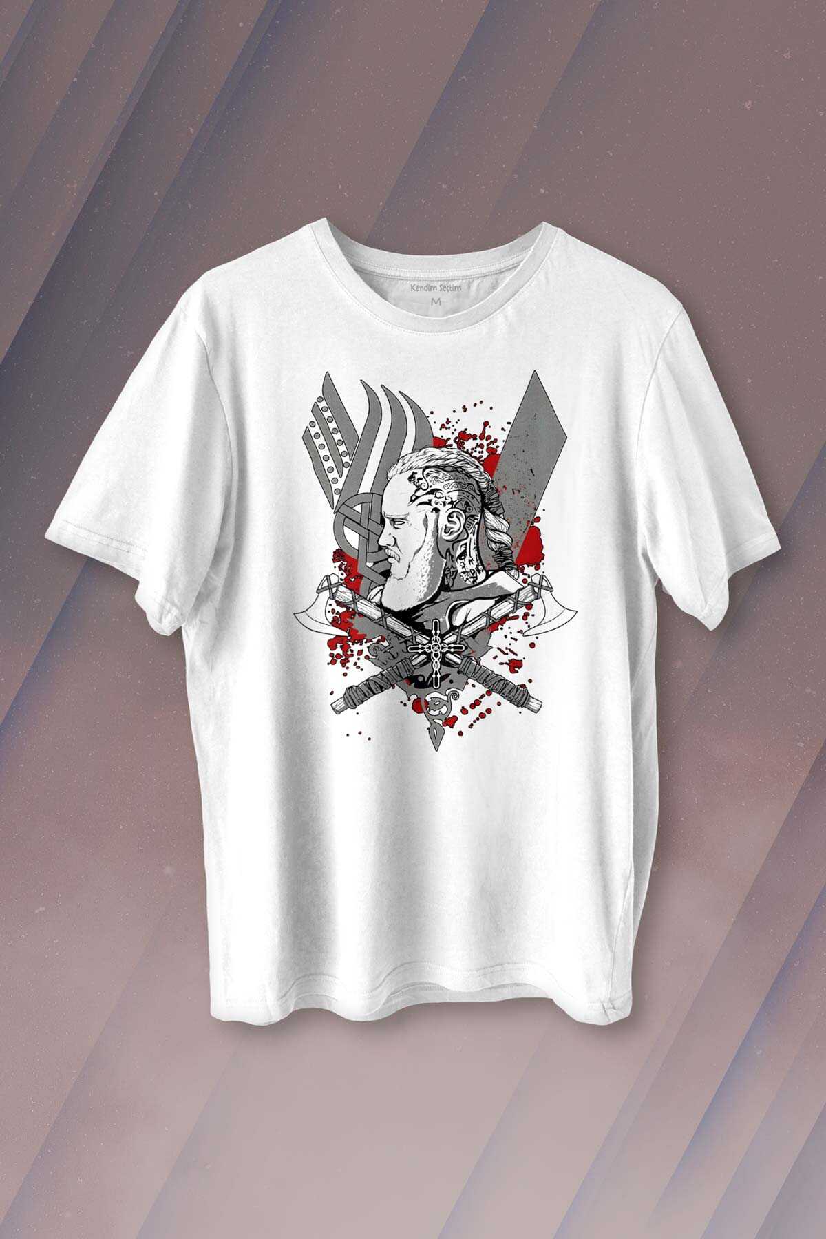 Vikings Ragnar Lothbrok Vikingler Savaşçı Baskılı Tişört Unisex T-Shirt