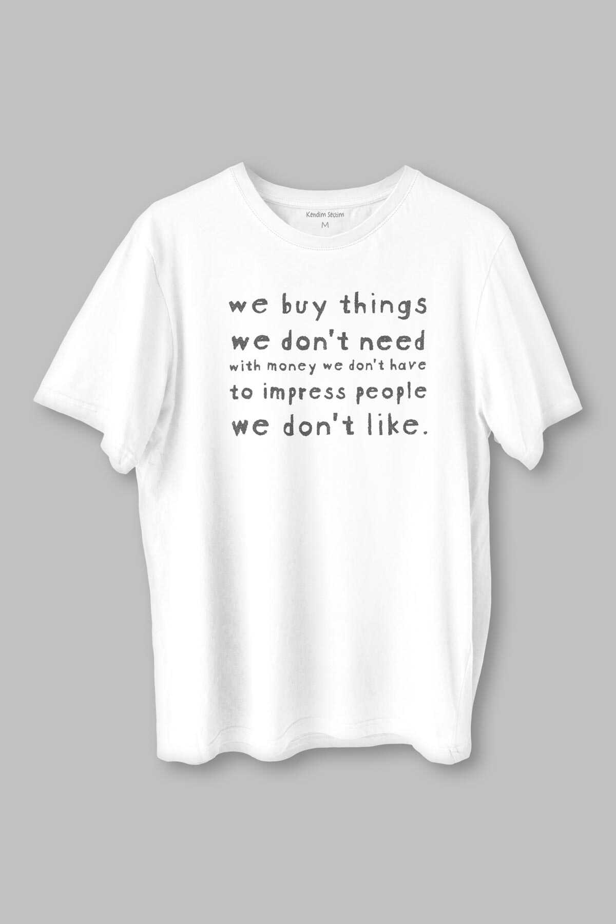 We Buy Things We Don't Need Fight Club Yazı Baskılı Beyaz Unisex T-shirt