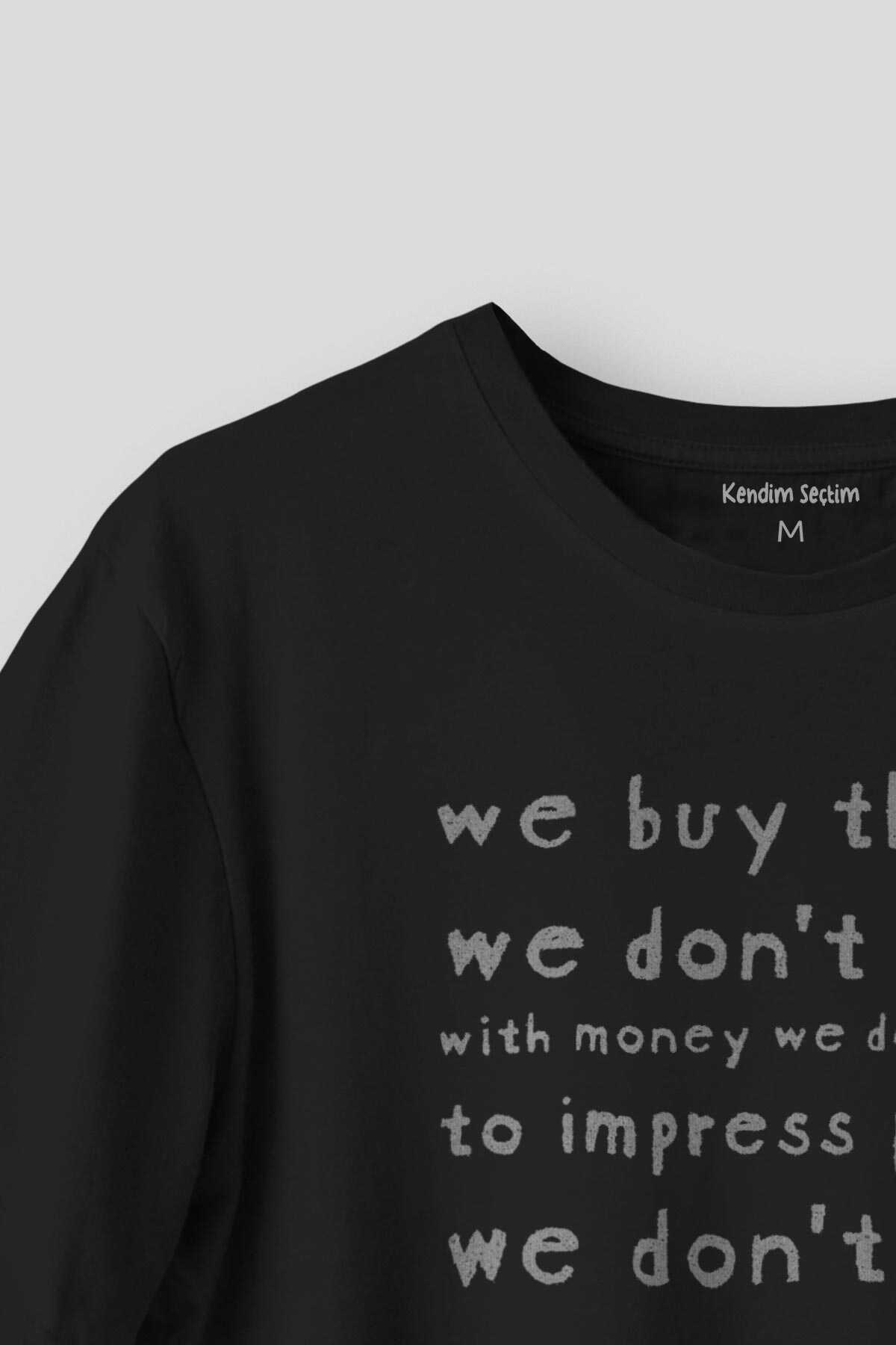 We Buy Things We Don't Need Fight Club Yazı Baskılı Siyah Unisex Tişört