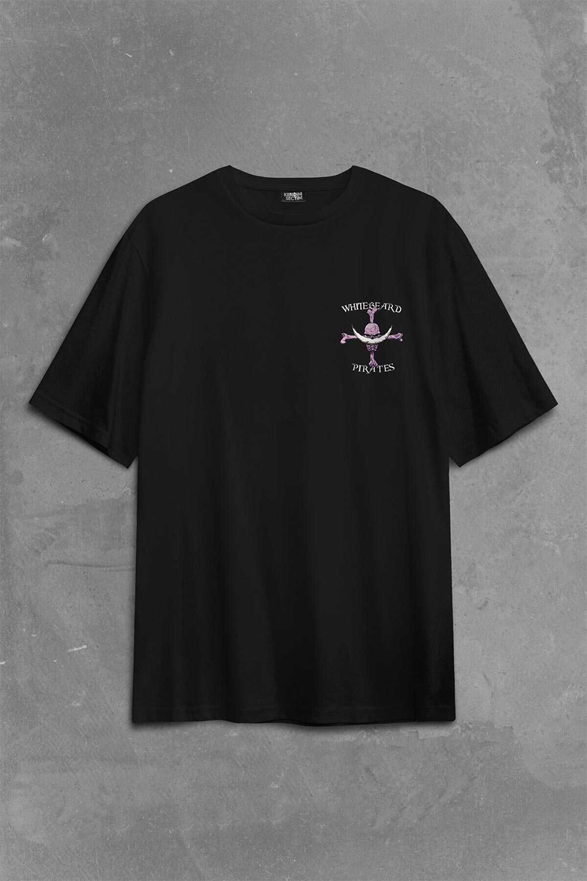 Whitebeard Amiral Prates One Piece Luffy Sırt Ön Baskılı Oversize Tişört Unisex T-Shirt