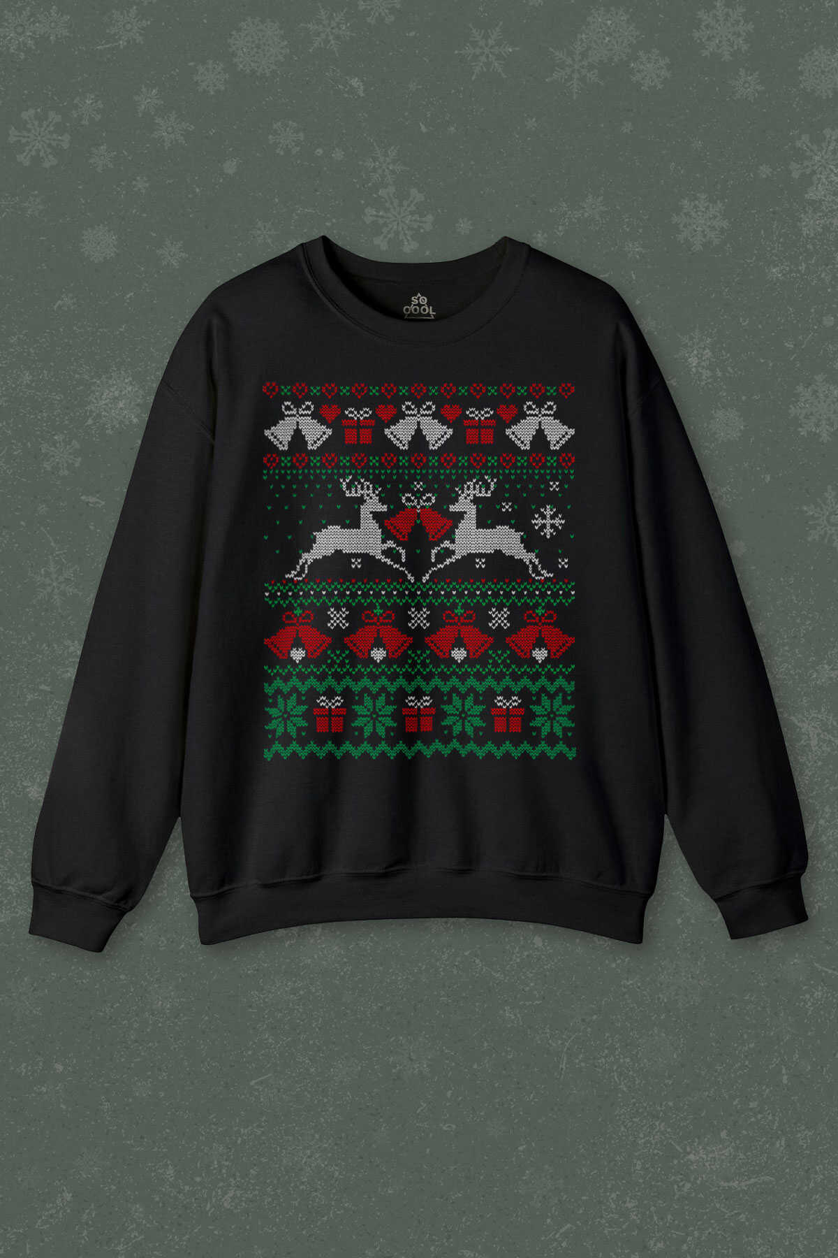 Yılbaşı Hediye Geyik 2026 Christmas Happy New Year Siyah Baskılı Sweatshirt